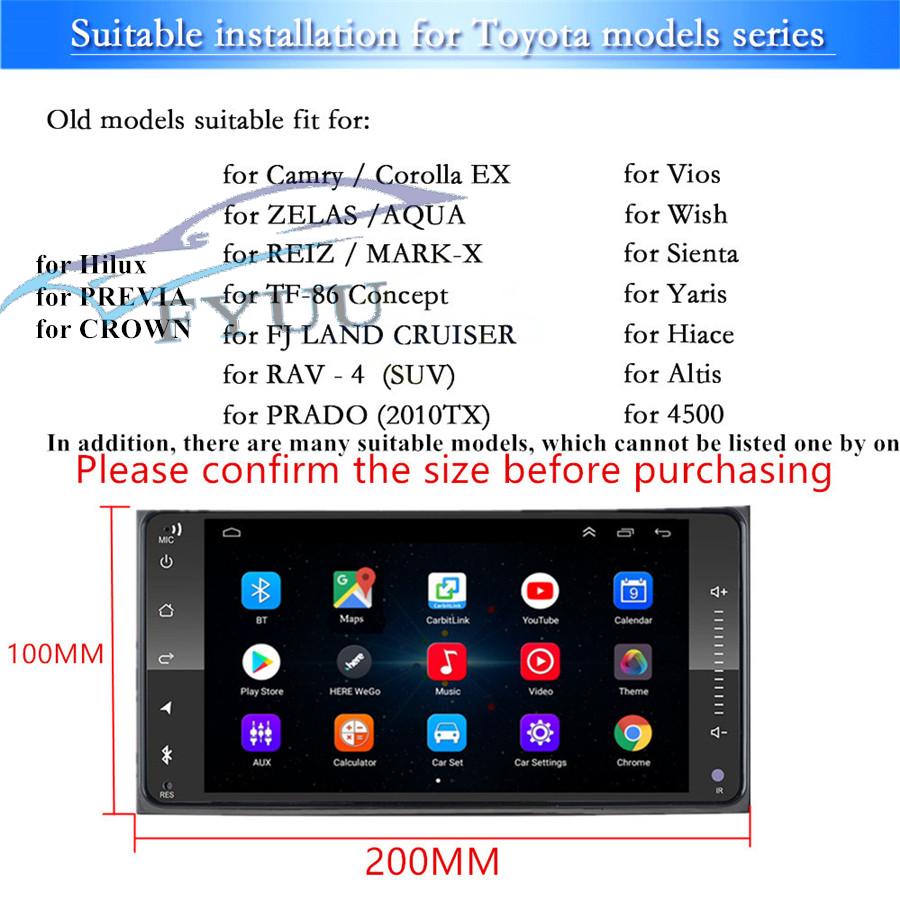 It is suitable for many Toyota series models . Please confirm the size before purchasing(200*100mm,as picture show) If you can't confirm whether it is suitable, please provide the model year and send us your car central control picture, we will help you confirm whether it is suitable. |