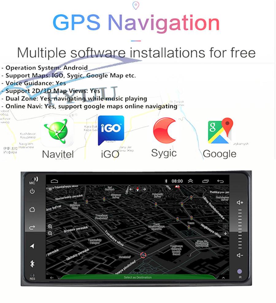 - Operation System: Android 11 - Support Maps: IGO, Sygic, Google Map etc. - Voice Guidance: Yes - Support 2D/3D Map Views: Yes - Dual Zone: Yes, navigating while music playing - Online Navi: Yes, support google maps online navigating |