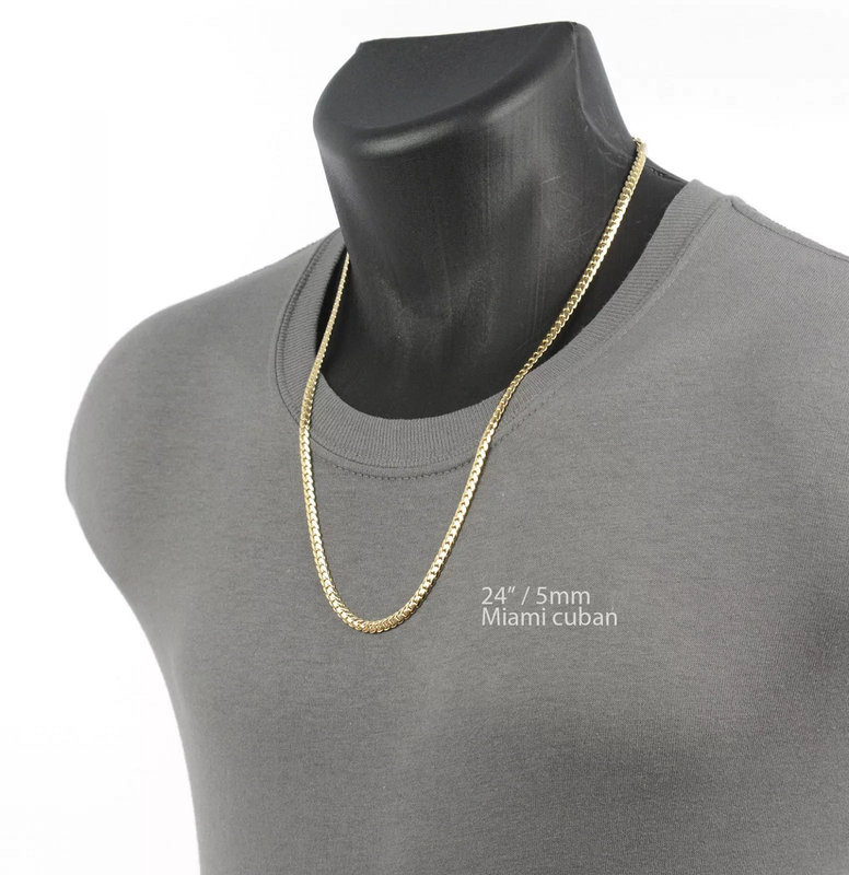 Pendant Necklace, 24" 5mm Thick Cuban Chain, 14k Gold Plated, Great for Casual Wear, Hip Hop Fashion