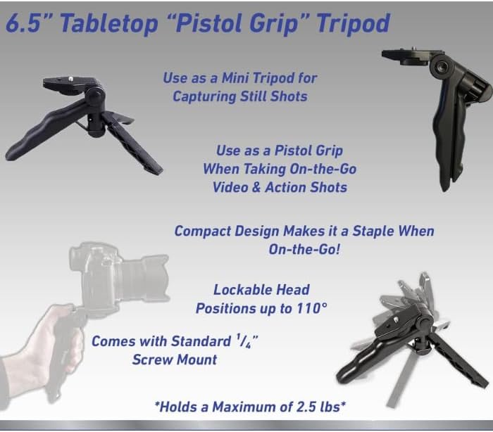 ✅ Acuvar Pistol Grip Mini Tripod – Use as a handheld grip or tabletop tripod for stability while filming.