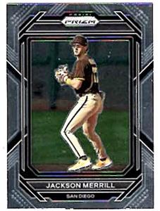 Here's a 2023 Panini Prizm rookie of San Diego Padres star Jackson Merrill. Card #166 is mint.