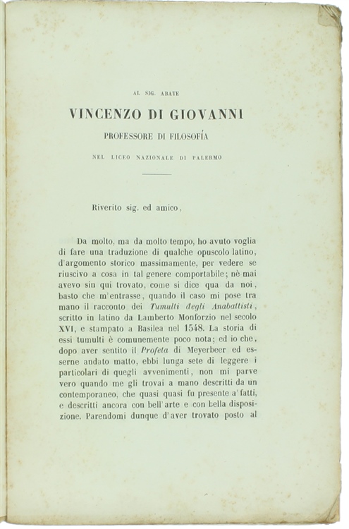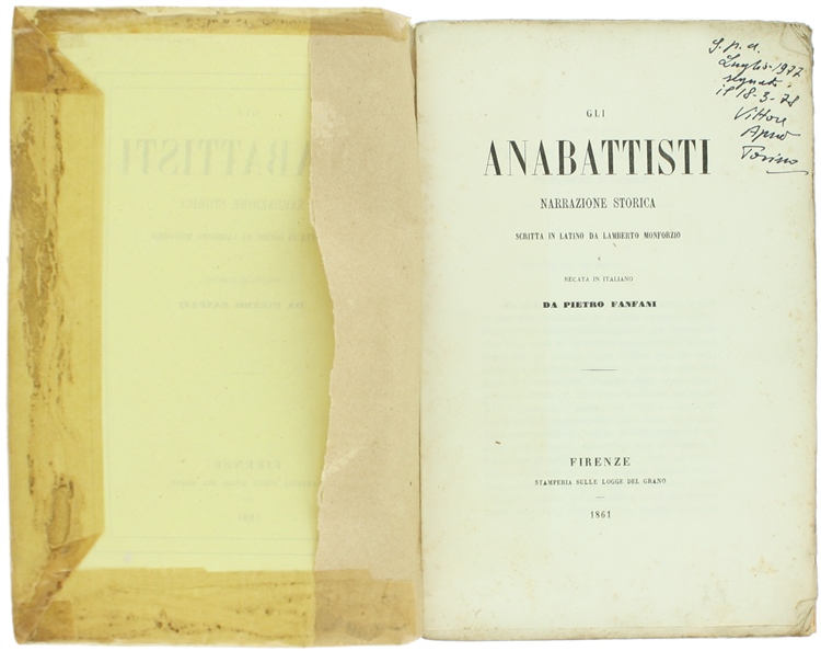 Complimenti, ora stai guardando: Titolo: GLI ANABATTISTI. Narrazione storica scritta in latino e recata in italiano da Pietro Fanfani.