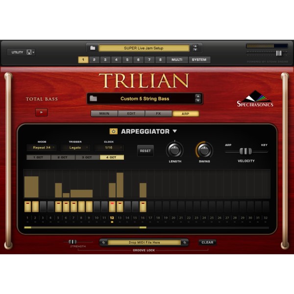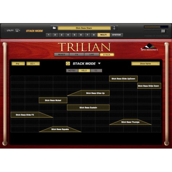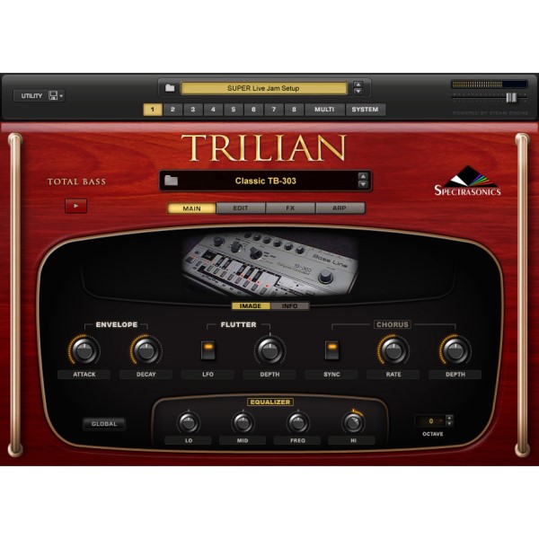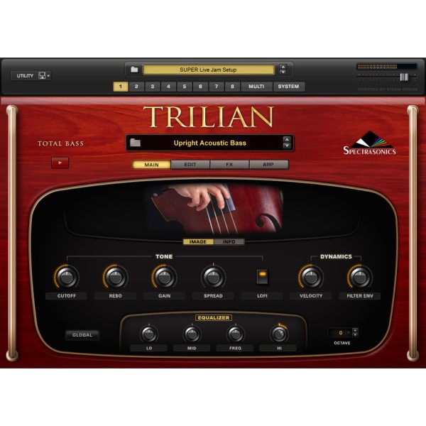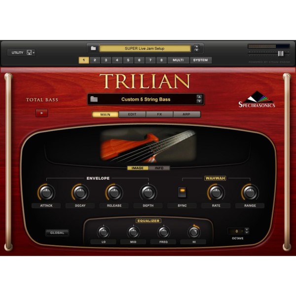 Trilian beeindruckt mit einer außergewöhnlich großen Library, die detailgetreu akustische, elektrische und synthetische Bassklänge abdeckt. Die Library wurde im Vergleich zum Vorgänger Trilogy deutlich erweitert und bietet jetzt noch ausdrucksstärkere Sounds. Dank der STEAM Engine, die bereits in Omnisphere eingesetzt wird, liefert Trilian hochauflösendes Samplestreaming und realistische Performance-Features.