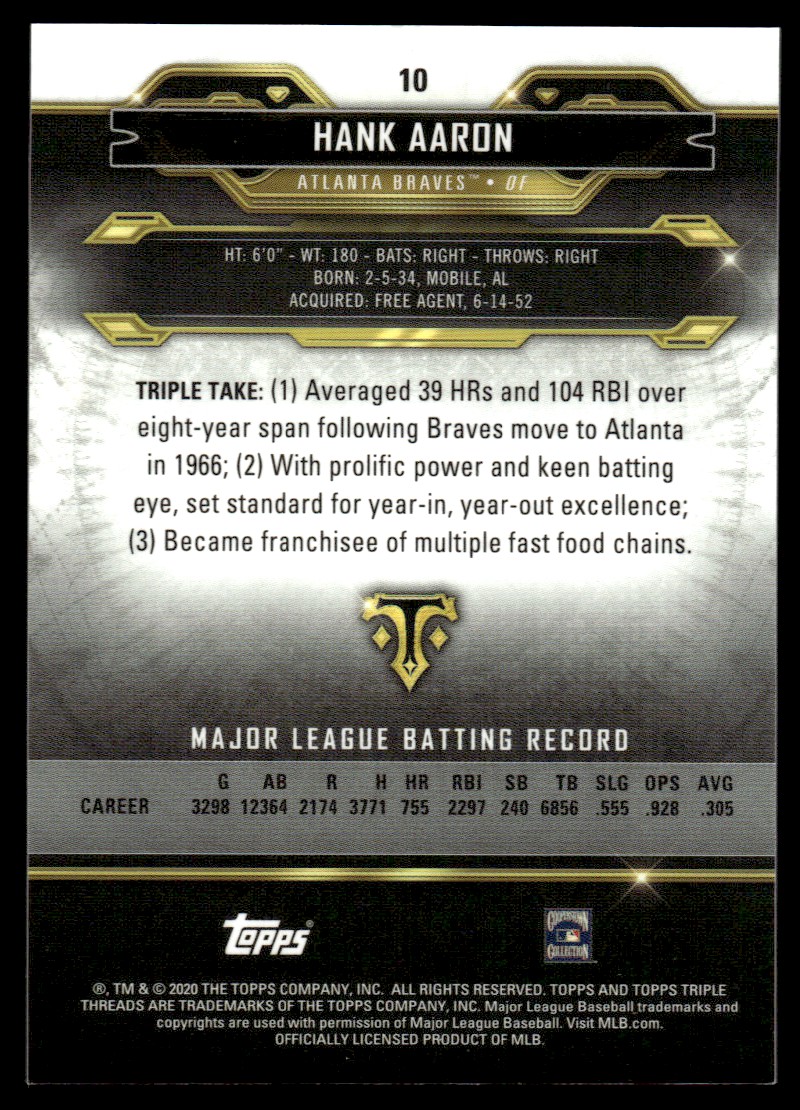 | 2020 Topps Triple Threads Hank Aaron Atlanta Braves #10 |