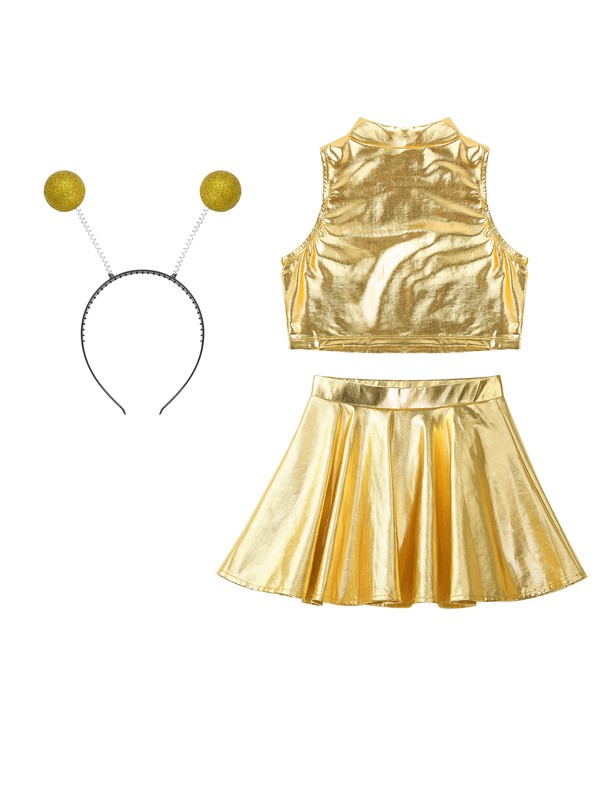 Metallic shiny fabric has unique luster and brings a very futuristic look, making girls look like outer space cutie.