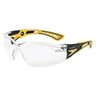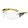 Safety Glasses, Series Rush+, Gender Unisex, Lens Color Clear, Polarized Lens No, Lens Coating Platinum, No Foam Lined, Eyewear Frame Design Wraparound, Eyewear Frame Style Frameless, Frame Color Black/Yellow, Eyewear Size Narrow, Frame Material Polycarbonate, Rubber, Lens Material Polycarbonate, Temple Color Yellow/Black, Temple Style Flexible, Photochromatic Lens No, Metal Detectable No, X-Ray Detectable No, UV Protection 99.99 Percent UVA/UVB, Includes Lens Cleaning Bag