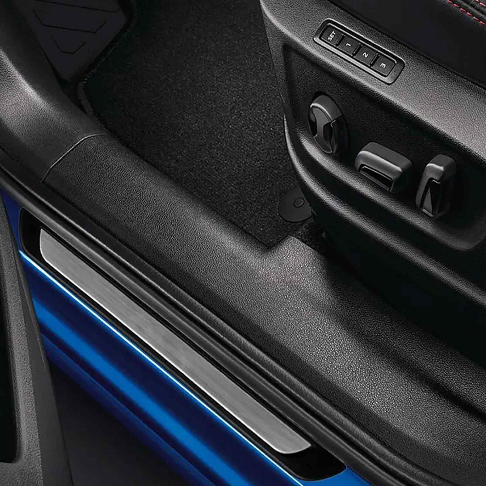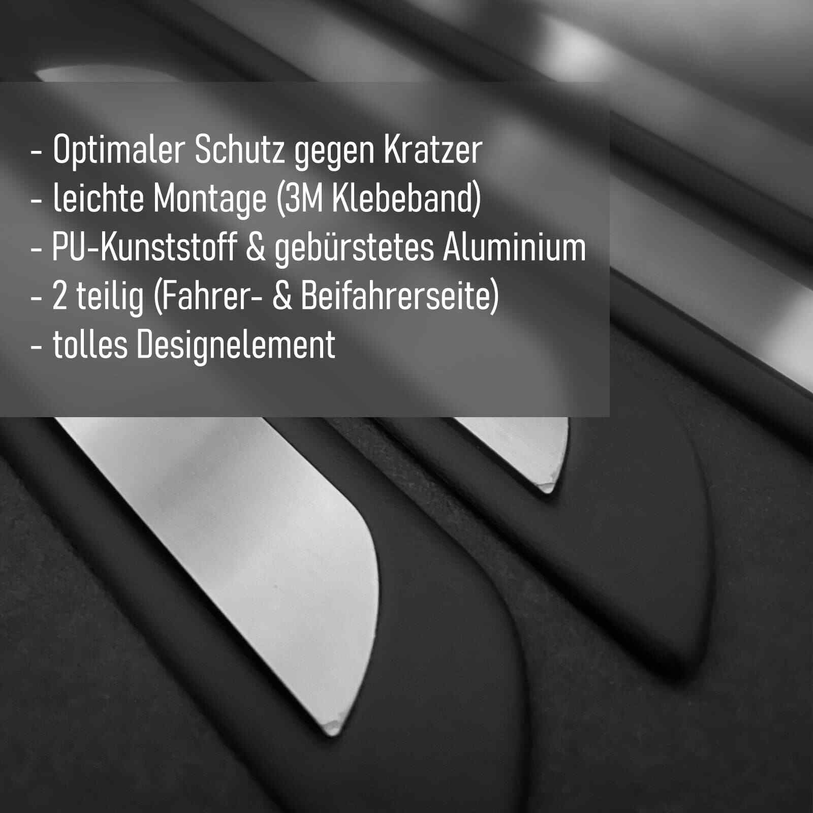 Schützen Sie die Schweller Ihres Fahrzeugs vor Kratzern, Schmutz und Beschädigungen mit diesen hochwertigen Einstiegsleisten. Das Set besteht aus gebürstetem Aluminium und ultraleichtem Polyurethan für eine edle Optik und robuste Haltbarkeit.