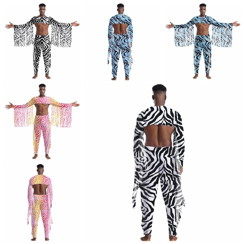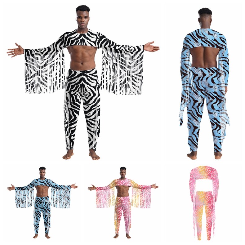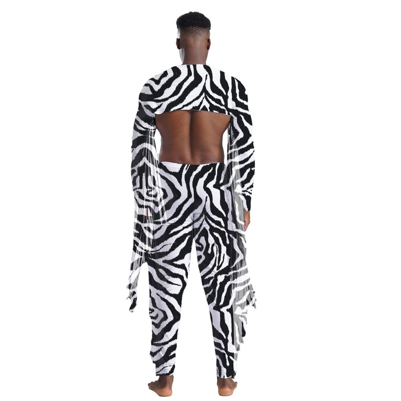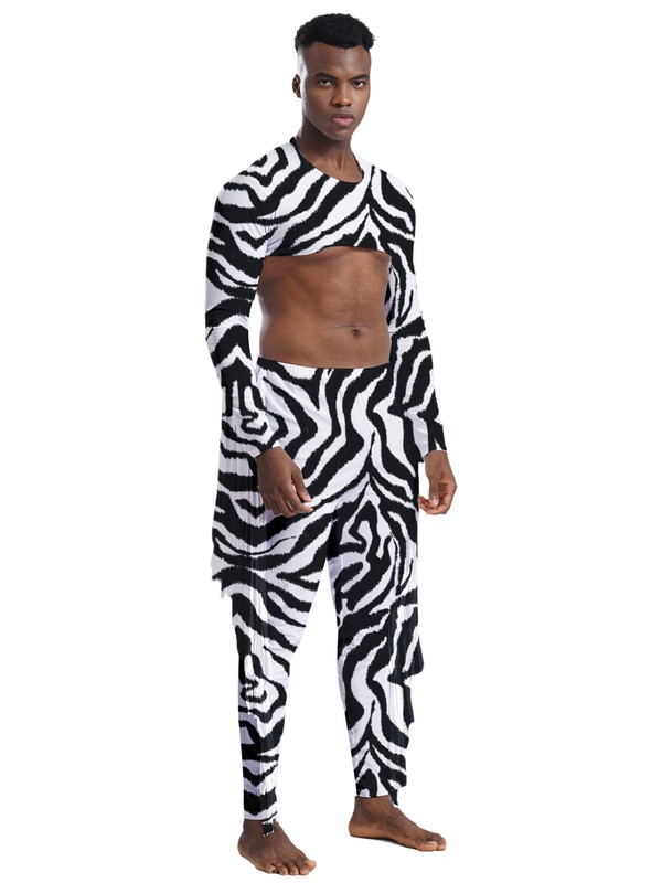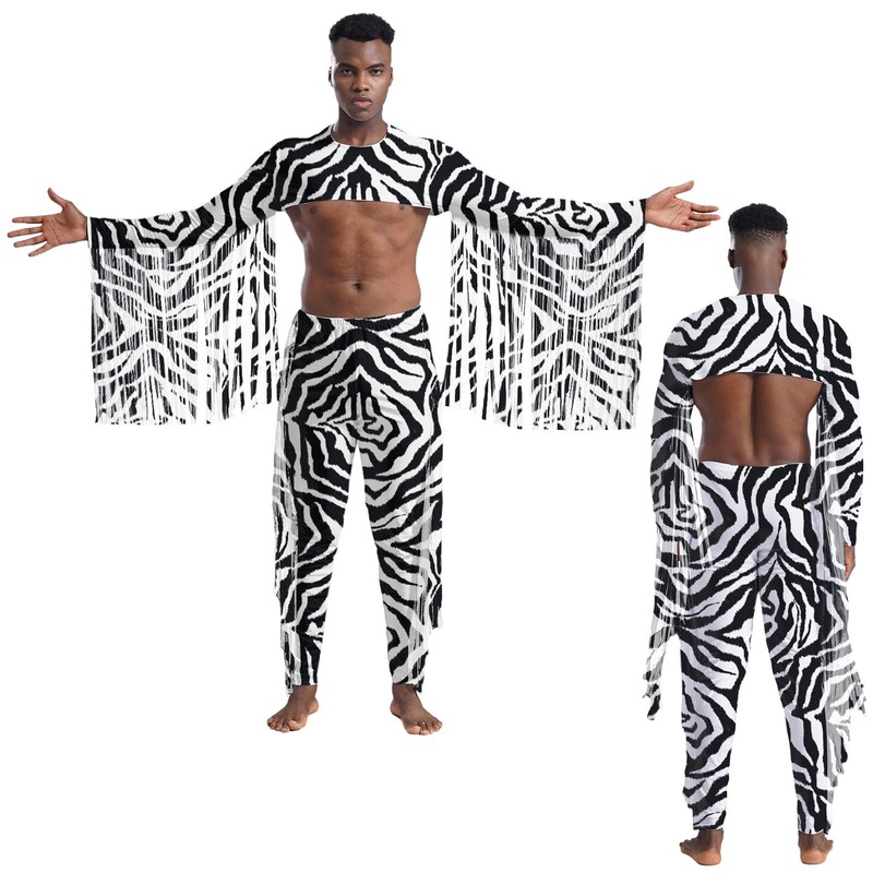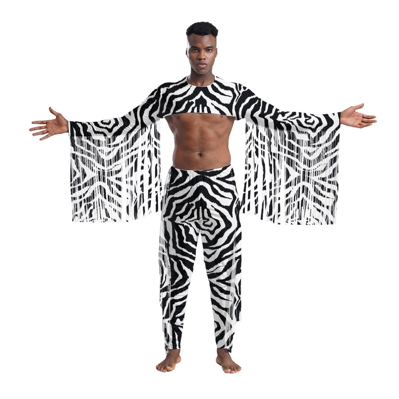 2 pieces crop top and pants for men, with tassels and zebra stripes print, making you more stylish.