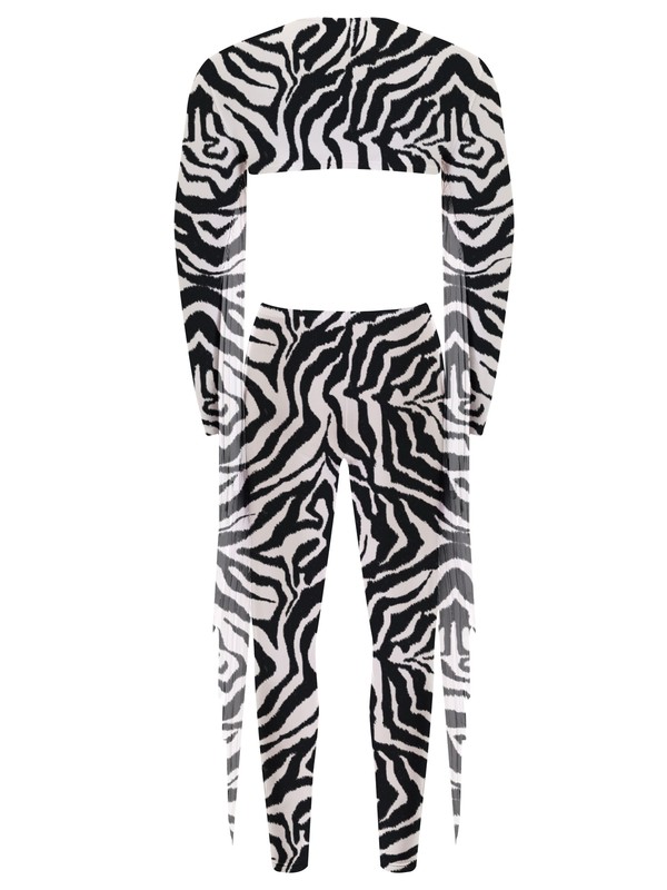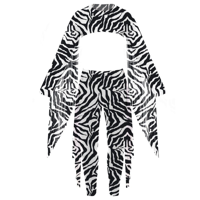 Adorned with long tassels at two side of sleeves and pants, and allover zebra atripes print, making you more unique.