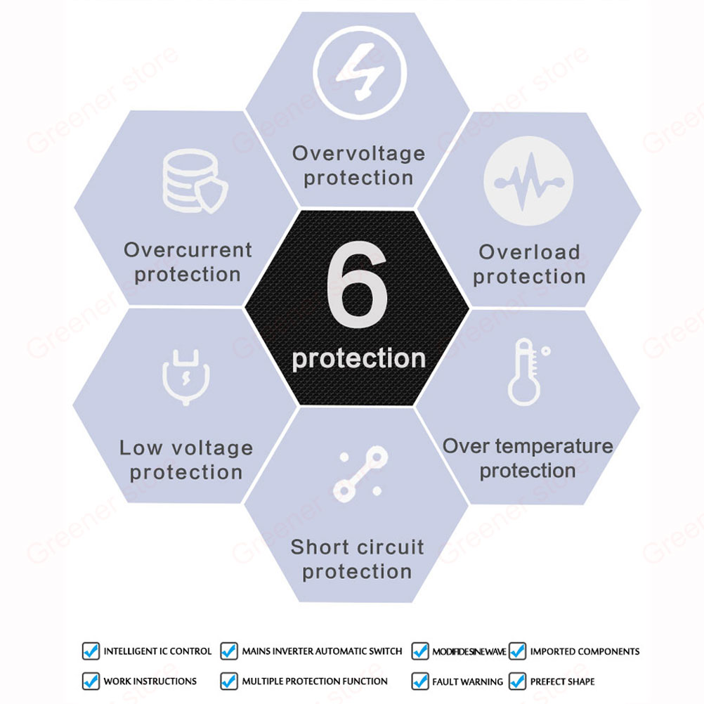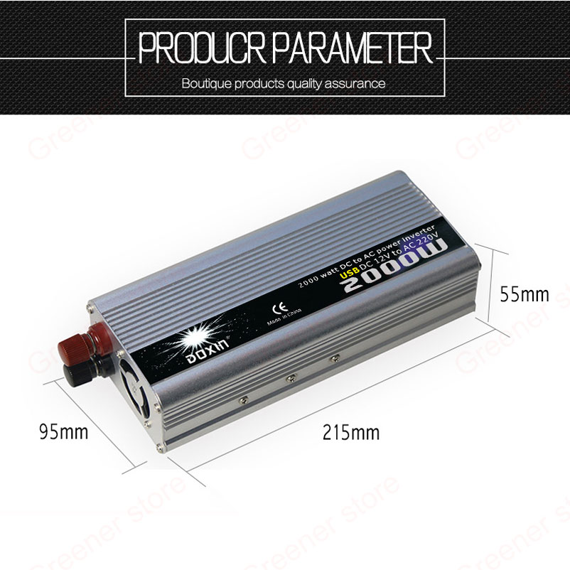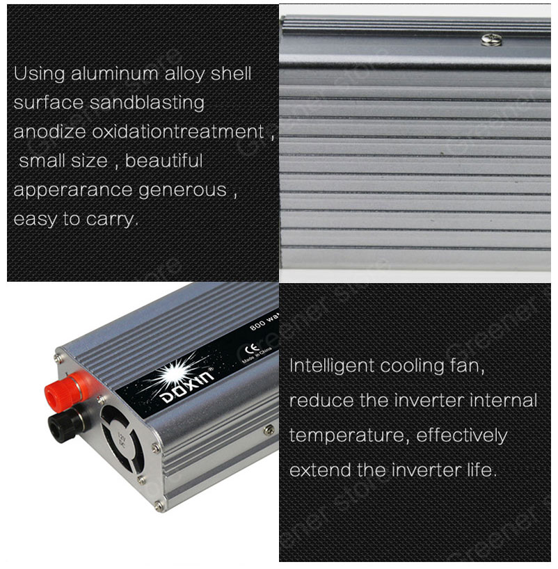 High converting efficiency. It converts a voltage of 12Volts of direct current into an alternating current of 230Volts.