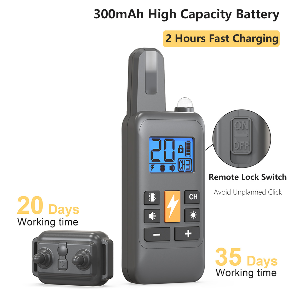 Expand 3300FT range: The encrypted dog training collar covers up to 3300FT, allowing your pet to roam further. Using dual channels, the distance can reach 3/4 mile.