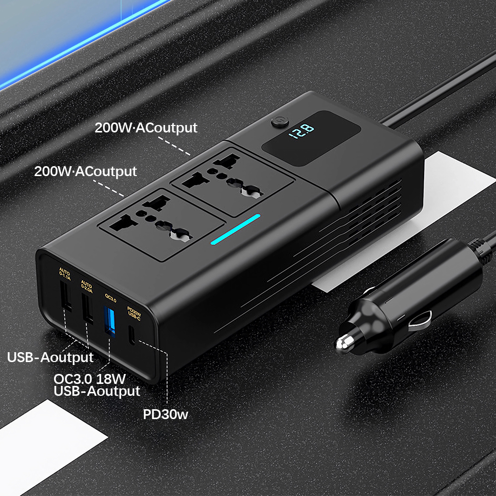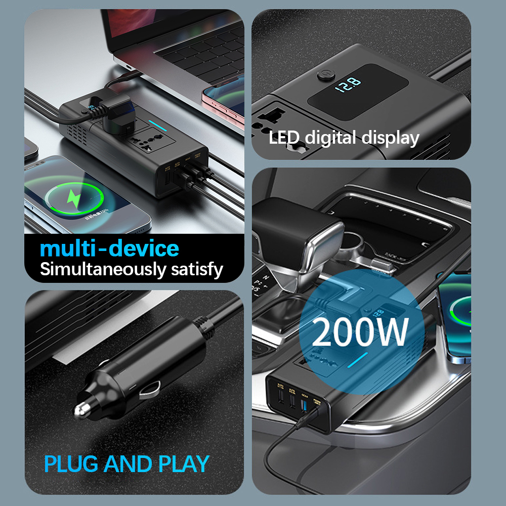 12V to 220V cigarette lighter car multi-function usb charger car charger inverter power socket car 200W Feature: