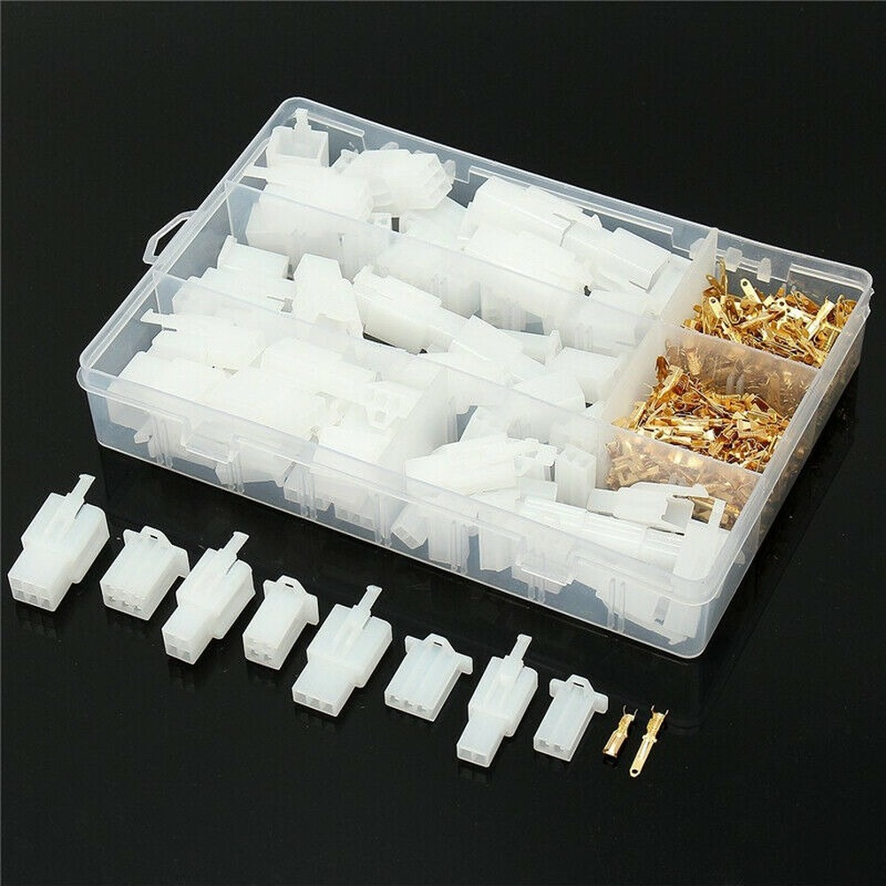 Lieferinhalt: 150 Stück x Steckeranschluss 150 Stück x Buchsenklemme 10 Stück x 2-Wege-Steckergehäuse 10 Stück x 2-Wege-Buchsengehäuse 10 Stück x 3-Wege-Steckergehäuse 10 Stück x 3-Wege-Buchsengehäuse 10 Stück x 4-Wege-Steckergehäuse 10 Stück x 4-Wege-Buchsengehäuse 10 Stück x 6-Wege-Steckergehäuse 10 Stück x 6-Wege-Buchsengehäuse