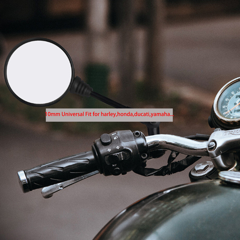 Features: Fitment: Fit for all motorcycles or bike's with 10mm boltMotorcycle Black Universal 10mm Side Mirror Rearview Mirror Anti-fall Folding Round Mirror