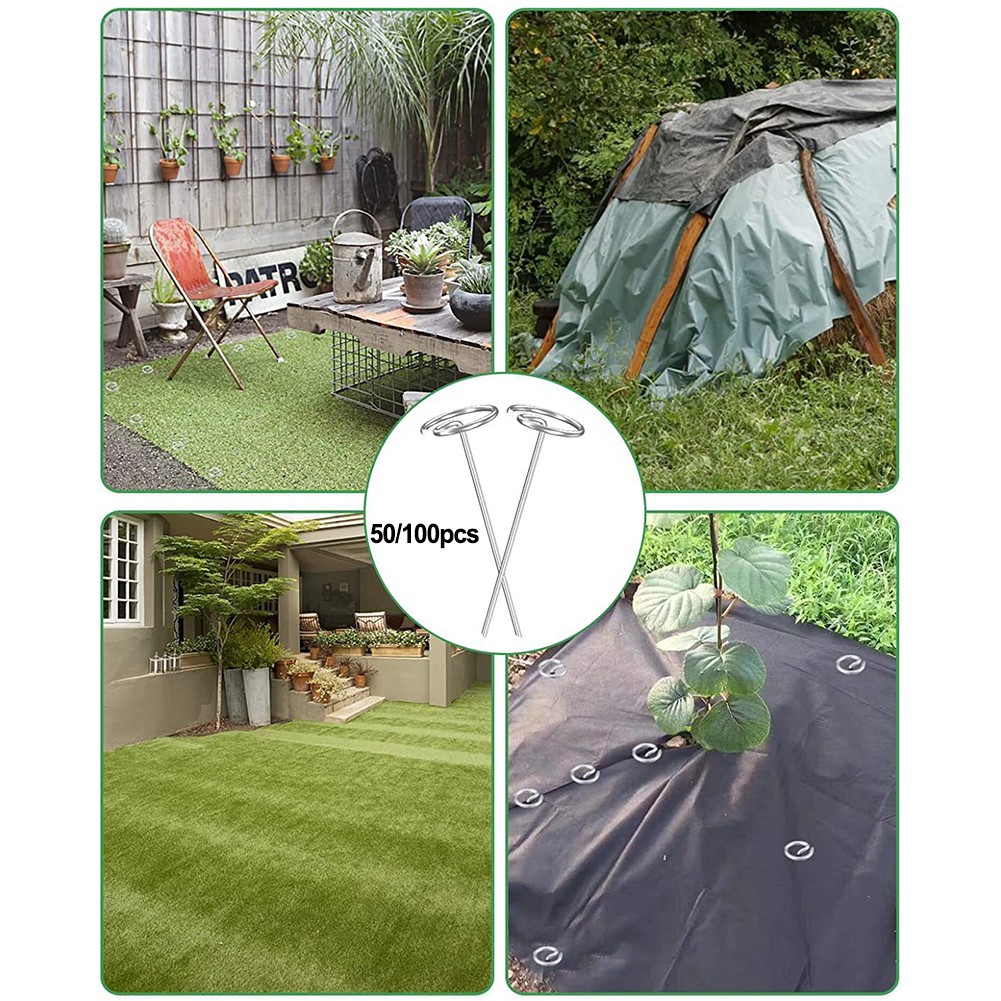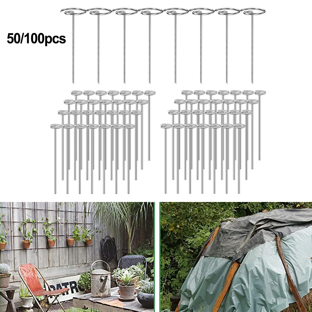 Jeder Pfahl ist 4 Zoll lang, lässt sich leicht in den Boden einsetzen und bietet ausreichend Unterstützung für Ihre Gartenstoffe und Netze.