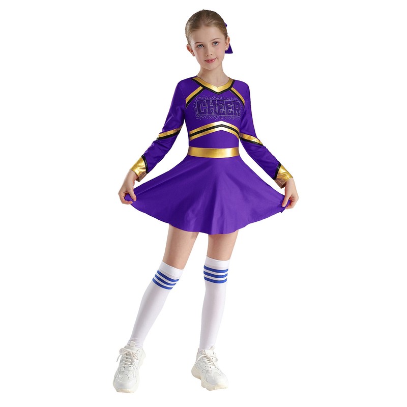 Girl’s cheerleading dance dress with glittery rhinestones letter pattern makes your child eye-catching in the crowd.