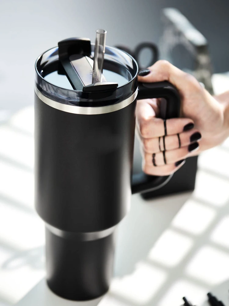 40oz Mug With Handle Cafe Insulated Tumbler Straw Stainless Steel Coffee Termos Cup In-Car Vacuum Flasks Portable Water Bottle