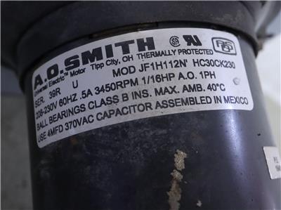 A.O. Smith JF1H112N Draft Inducer Blower Motor HC30CK230 1/16HP 3450RPM 1PH