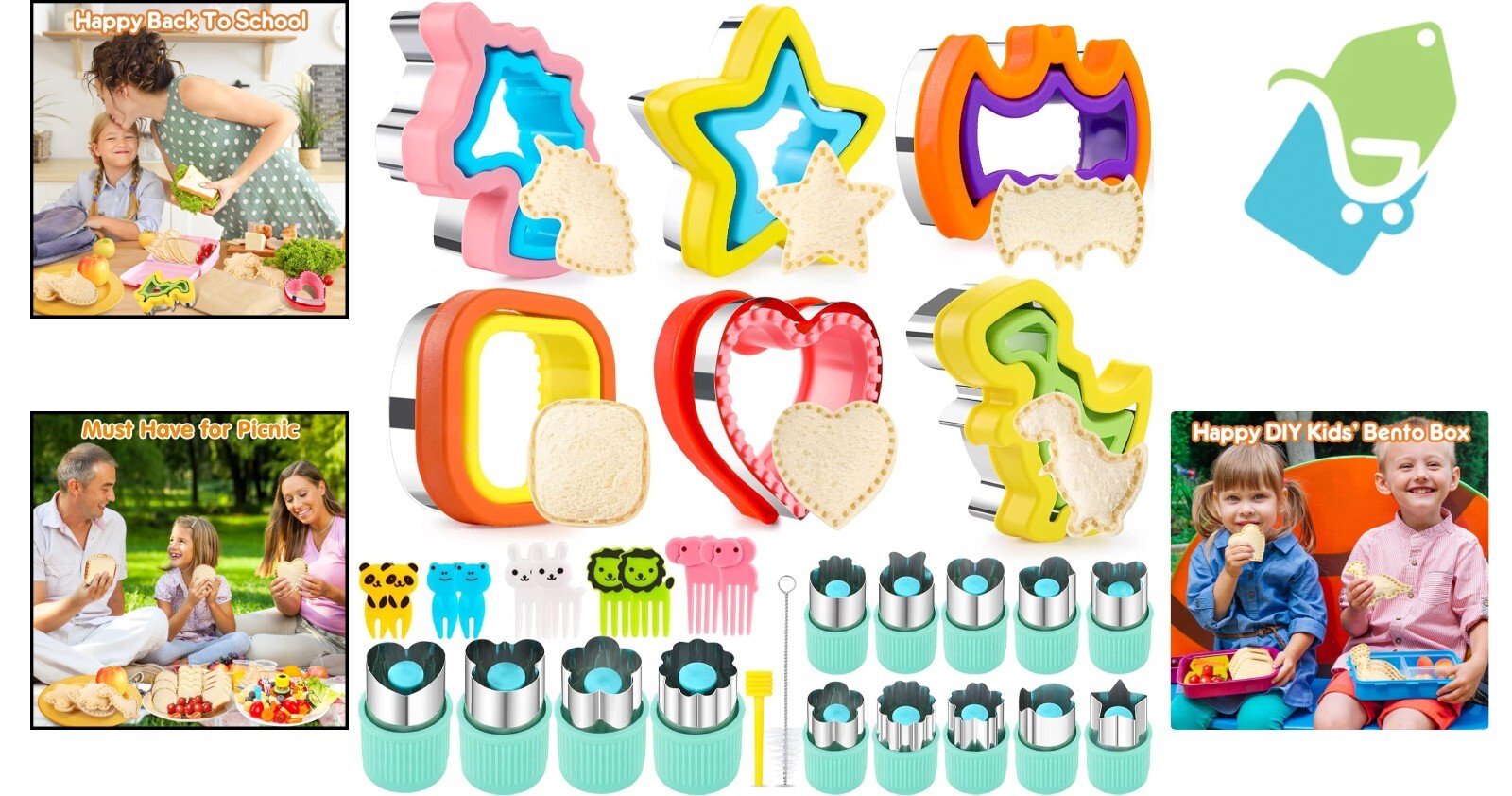32-Piece Sandwich Cutter & Sealer with Cute Animal Forks