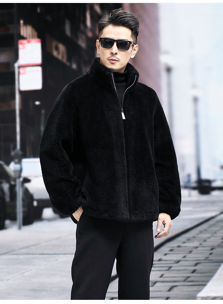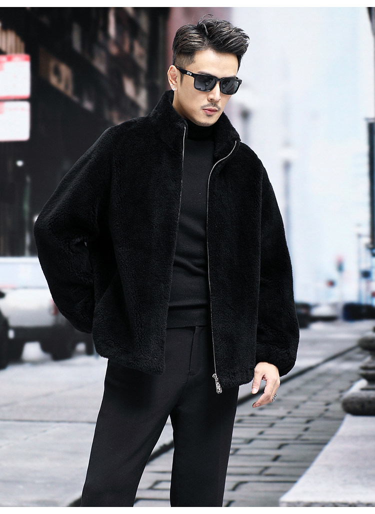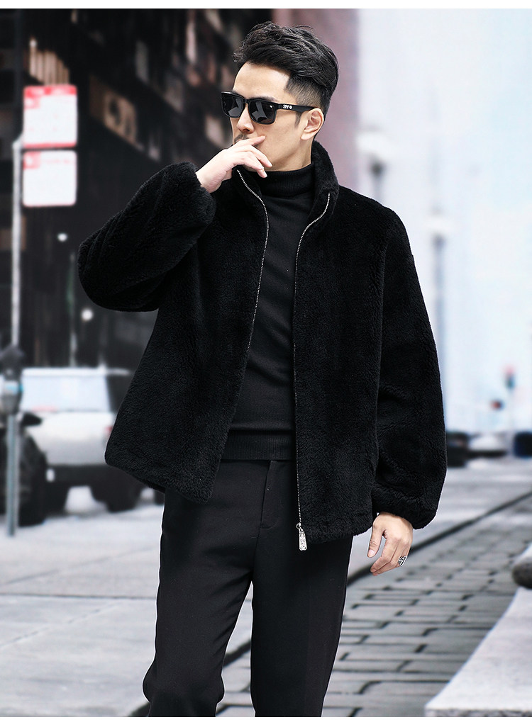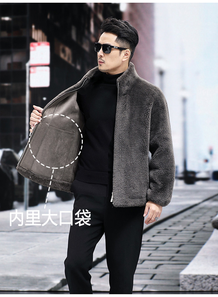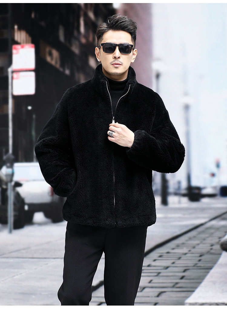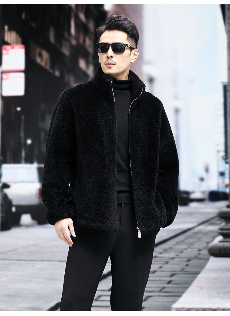 100% Wool Fur Men Stand-up Collar Sheep Sheared Fur All-in-one Thick Coat Jacket