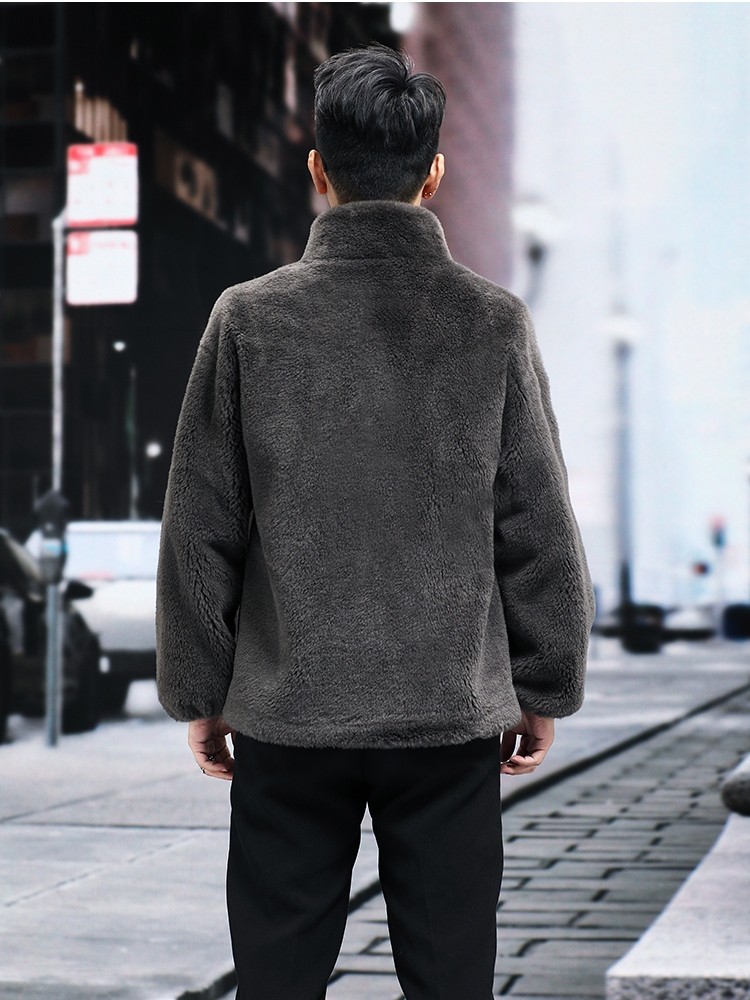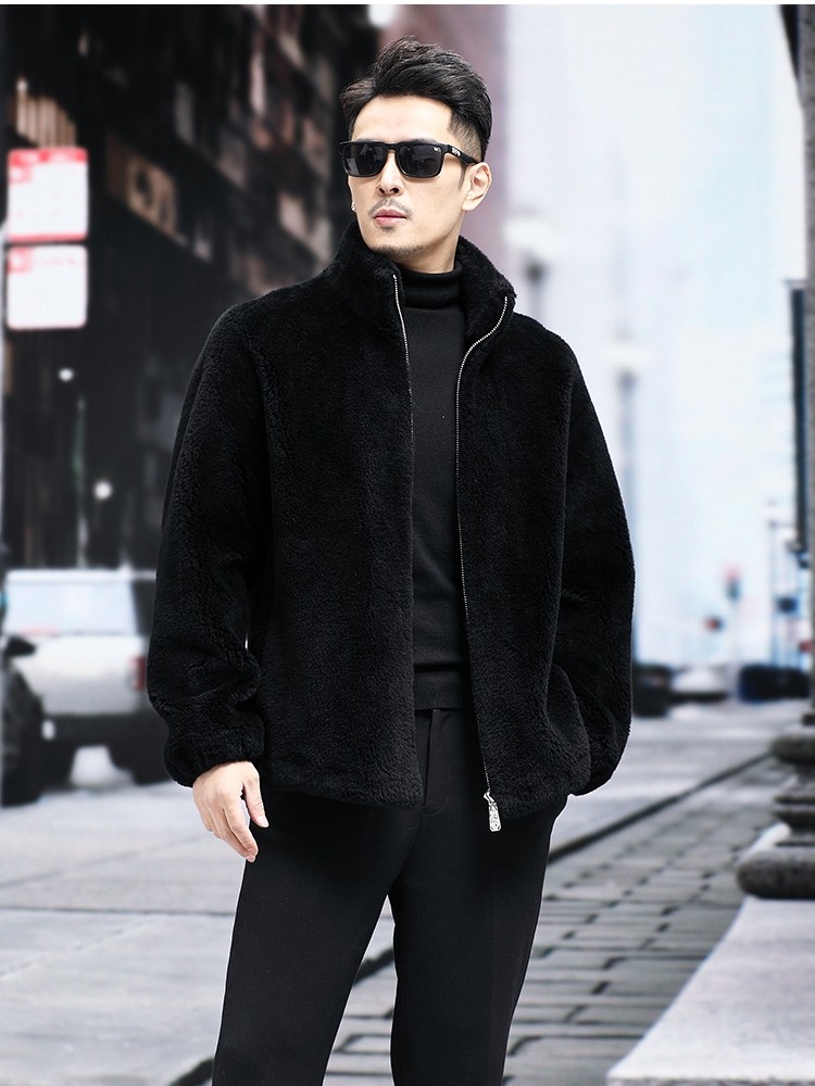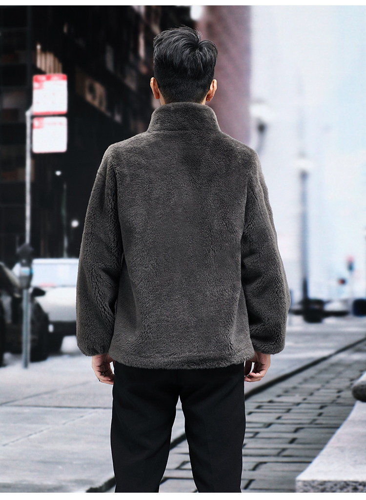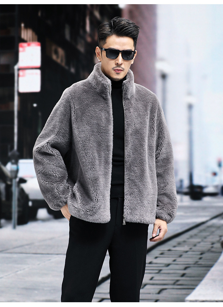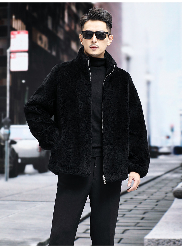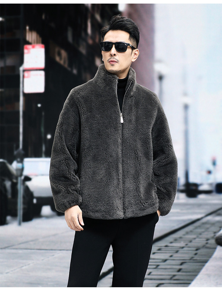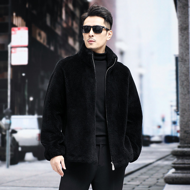100% Wool Fur Men Stand-up Collar Sheep Sheared Fur All-in-one Thick Coat Jacket