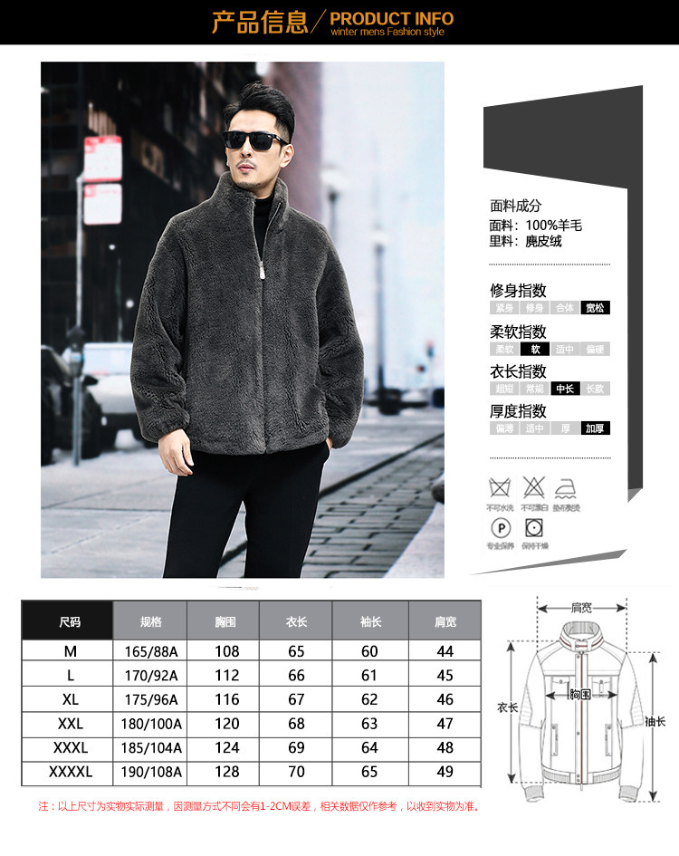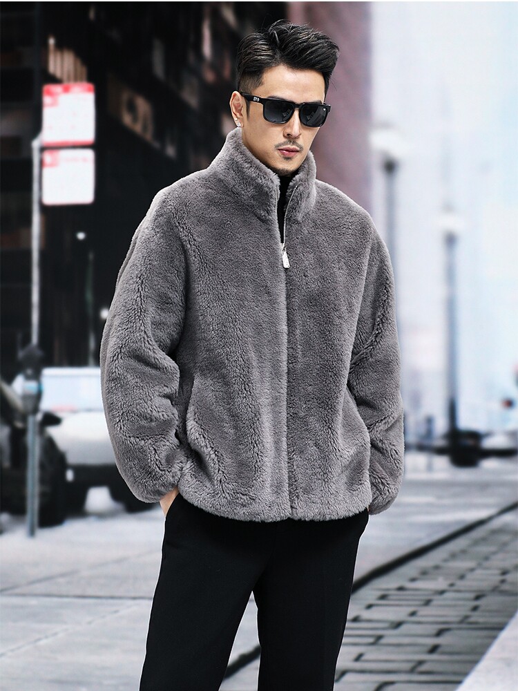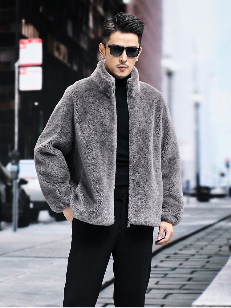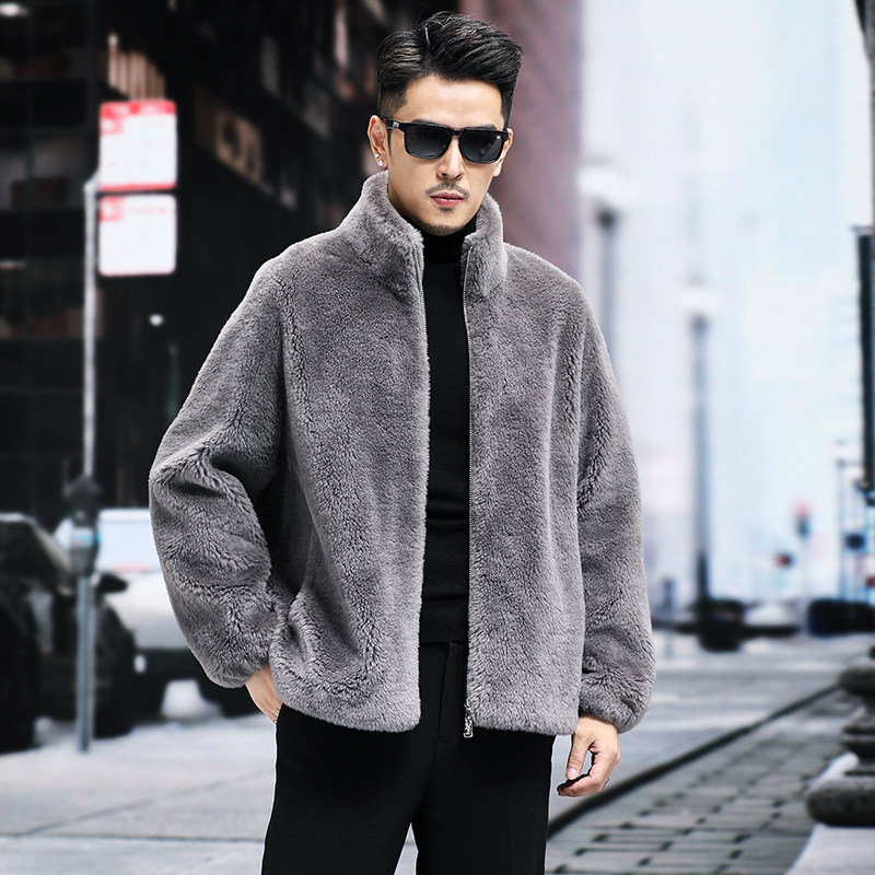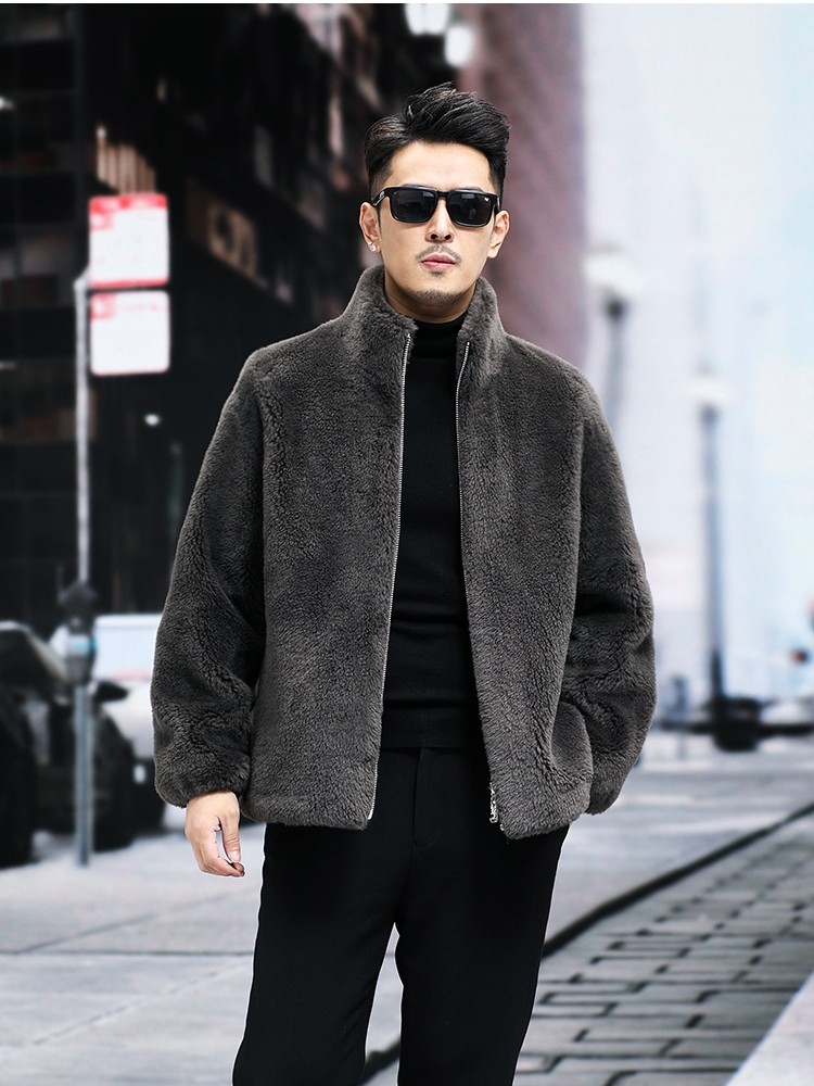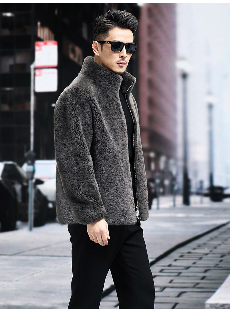100% Wool Fur Men Stand-up Collar Sheep Sheared Fur All-in-one Thick Coat Jacket