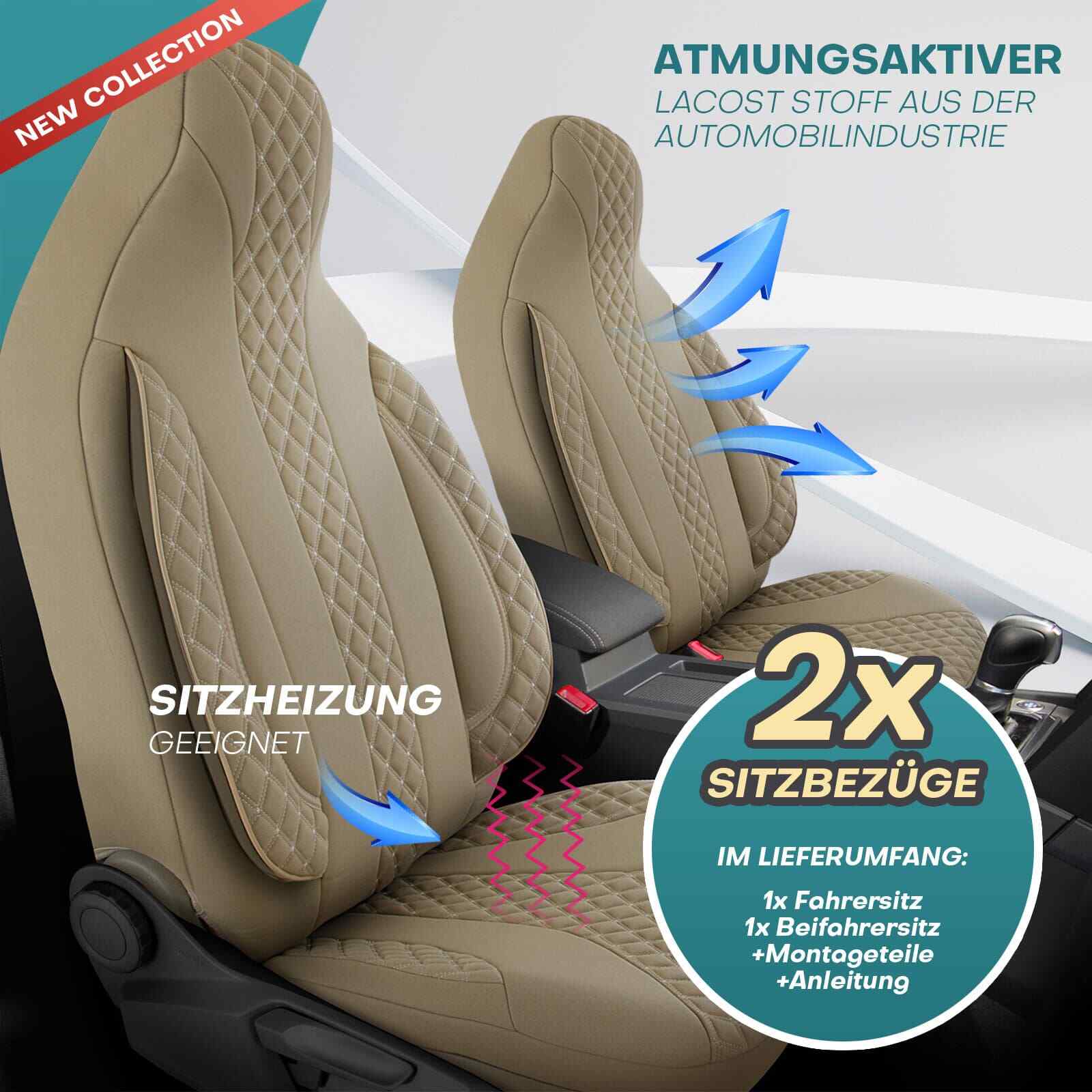 - Set enthält 2 Sitzbezüge für Fahrer- und Beifahrersitze.