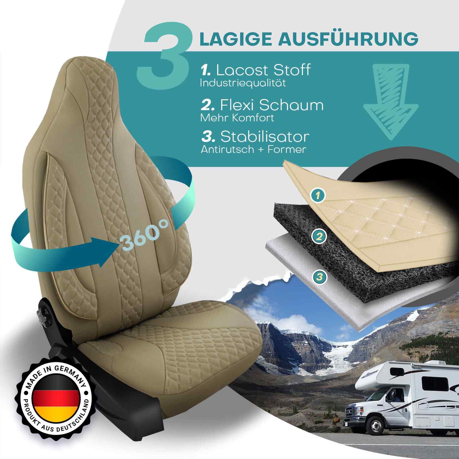 - Premium Pilotsitzbezüge für Pilote Galaxy 730 Wohnmobile in Beige.