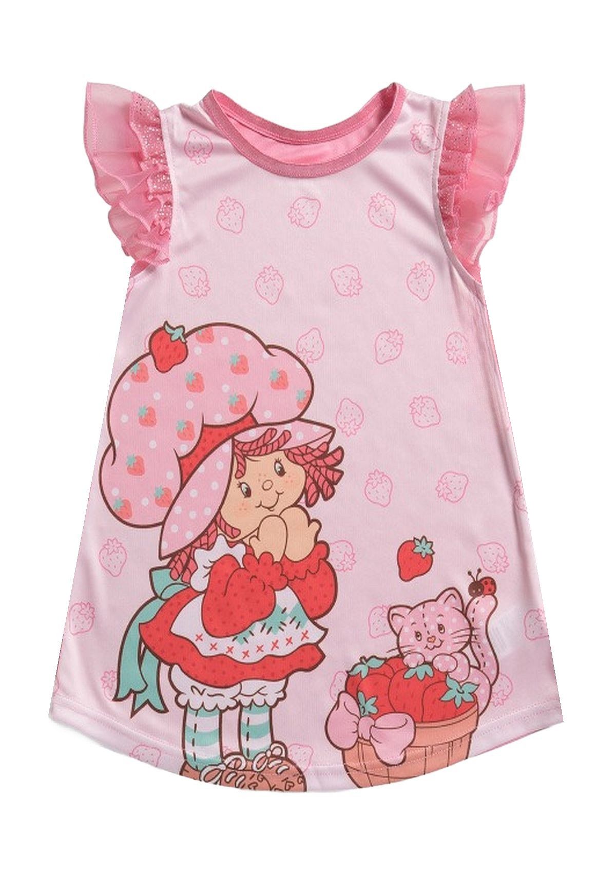 The nightgown features a roomy pink satin stretch collar and enchanting shimmery tulle flutter sleeves that add an extra touch of charm. Made from lightweight satinet fabric, it's soft and comfortable, crafted from 100% polyester for easy wear. Your little one will feel like they're stepping right into the colorful universe of Strawberry Shortcake!