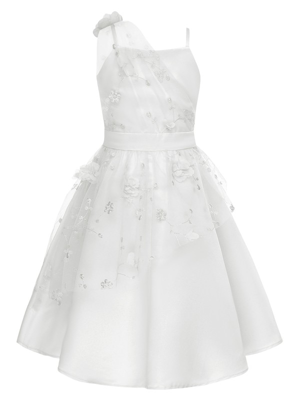 It has exquisite embroidery and three-dimensional fake flowers decoration, irregular mesh design, adds a graceful touch to the dress.