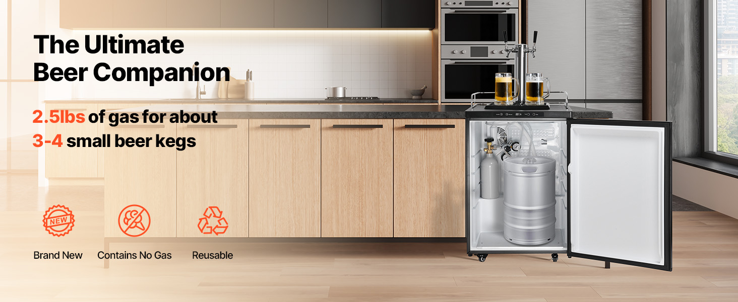 Your Go-to Beer Companion: Designed without pre-filled gas, our CO2 cylinder tank can be loaded with 2.5 lbs of food-grade, 99.95% pure CO2 compliant with E290 standards. It's reusable and ideal for dispensing around 3-4 small beer kegs, making it an essential addition to any beer enthusiast's setup