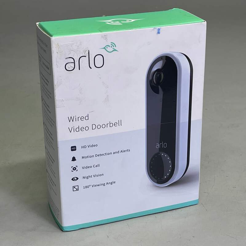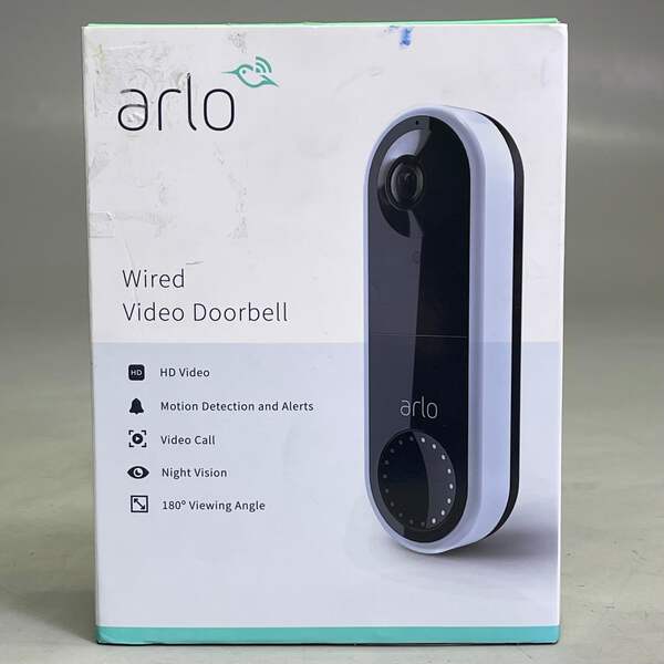 ARLO Wired Video Doorbell with Night Vision Condition: Pre-Owned - Excellent Condition (Item Condition May Vary From Photos) Size: 180° FOV Color: White MPN/Model: AVD1001W-100NAS Details: HD Video Motion Detection & Alerts Video Call Night Vision 180 Degree Field of View Weather Resistant Built in Smart Siren Advanced AI Object Detection Smart Activity Zones