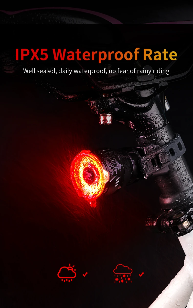Smart Bike Rear Light Waterproof LED Charging Bicycle Auto Brake Sensing Light Accessories Bike Taillight Light