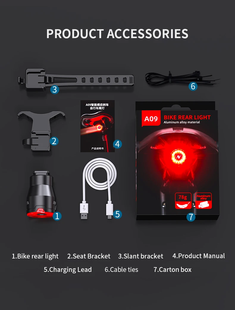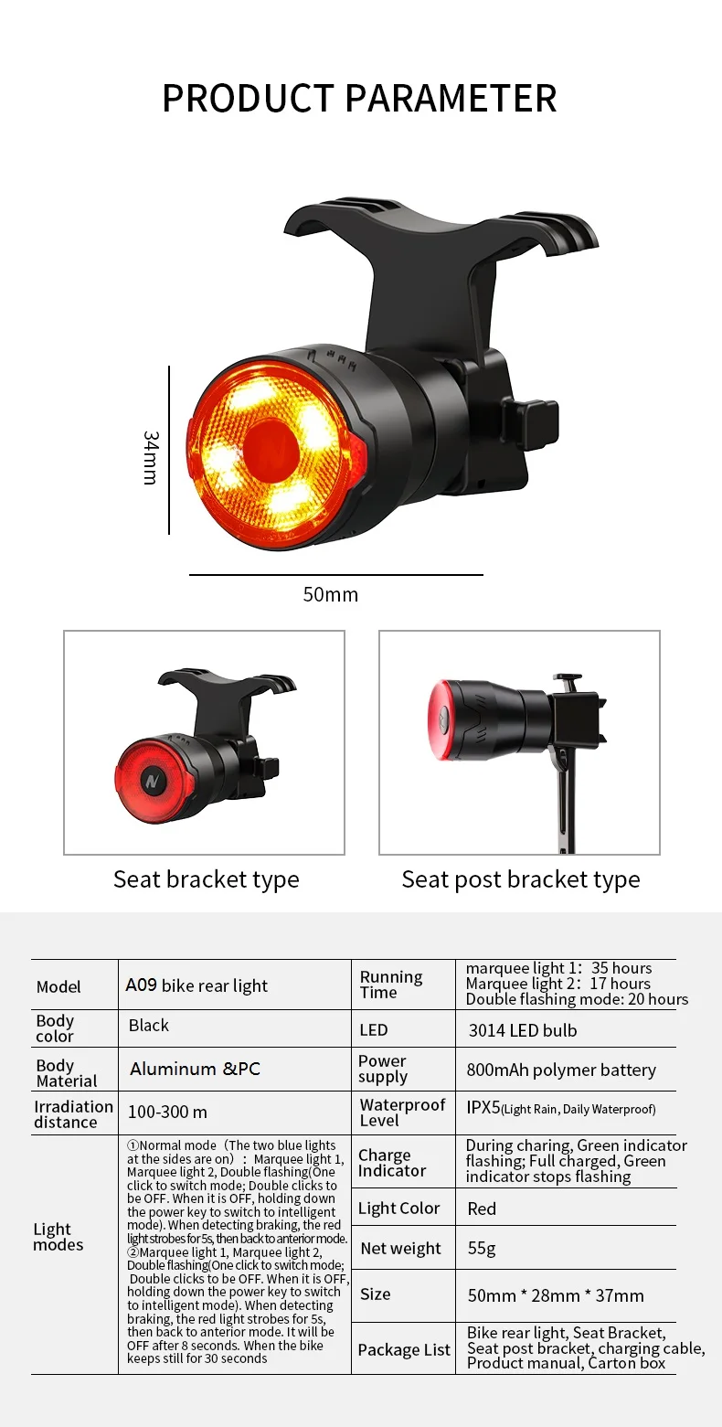 【ULTRA-BRIGHT LED BIKE TAIL LIGHT】Natfire A09 bike tail light have 16 high-end LED lights and the brightness up to 120 LM, it’s bright enough to be seen from 150ft away in foggy/rainy day or even in dark night.