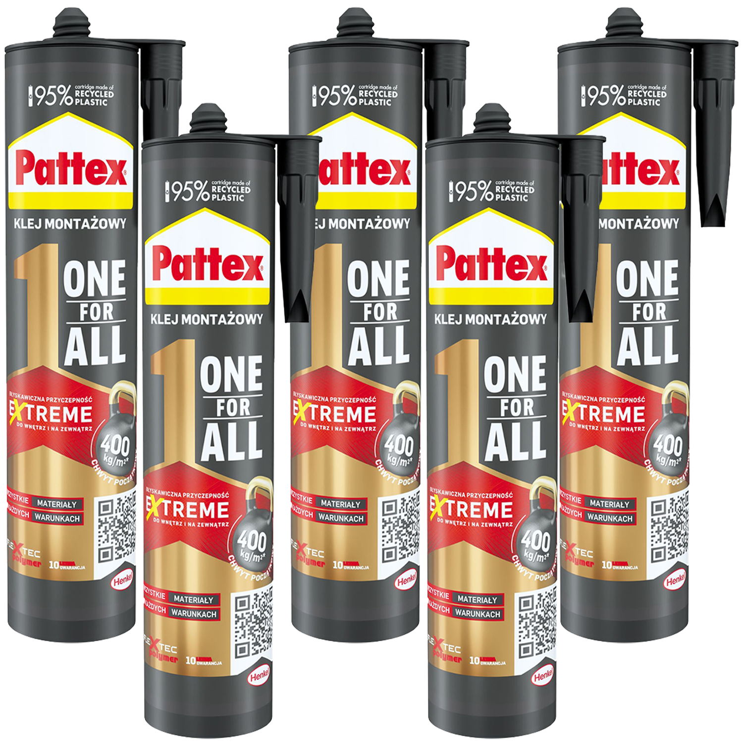 ist ein hochwertiger Polymer-Universalklebstoff auf Basis der "Flextec-Polymer"-Technologie. Dank der Verwendung der Formel FLASH ADHESIVITY bis zu 400 kg/m² (40 g/cm² in Henkel-Labortests bestätigt), bietet er effektive Objekte ohne die Notwendigkeit einer längeren Unterstützung und ist daher einer der besten Sofortklebstoffe auf dem Markt. Er eignet sich für alle Arten von Materialien und Oberflächen, unter allen Bedingungen. Pattex ONE FOR ALL Sekundenkleber haftet auf Gegenständen im Innen- und Außenbereich aus saugfähigen und nicht saugfähigen Materialien.