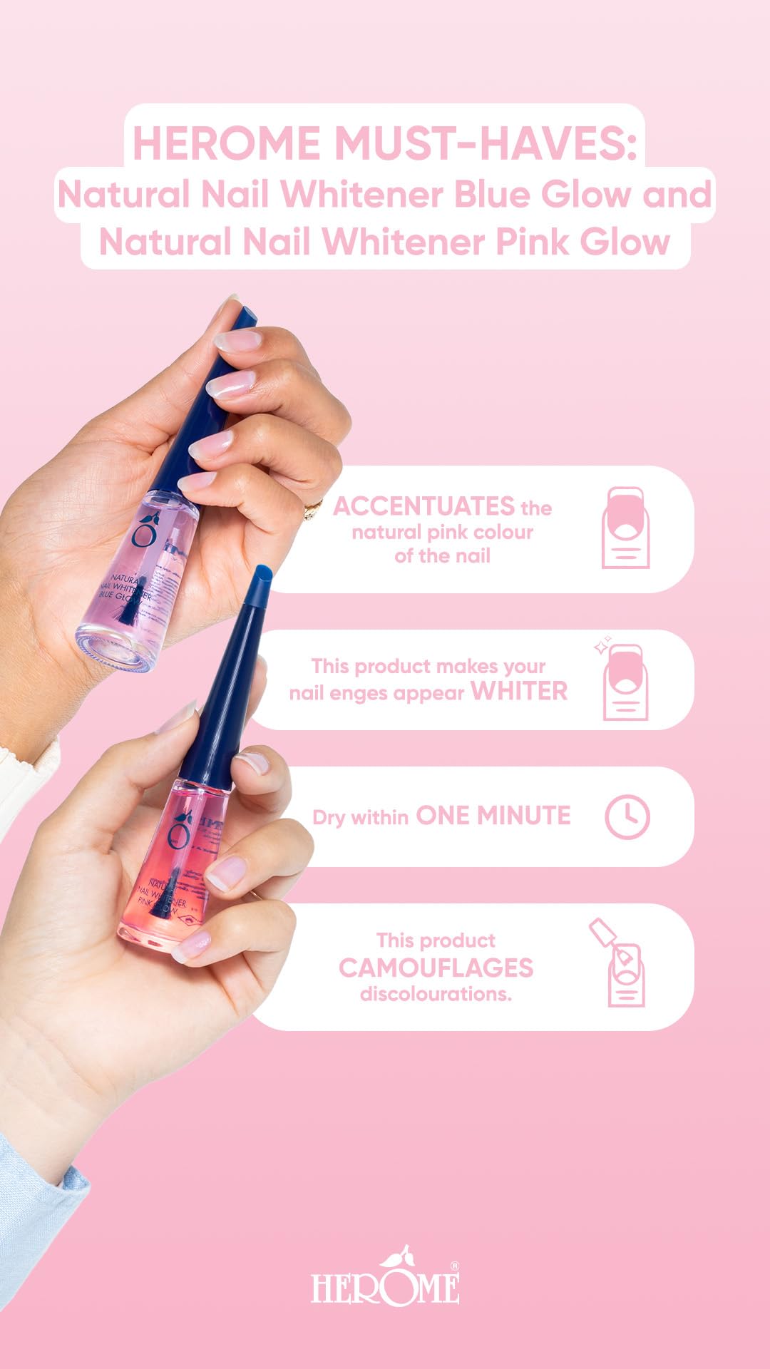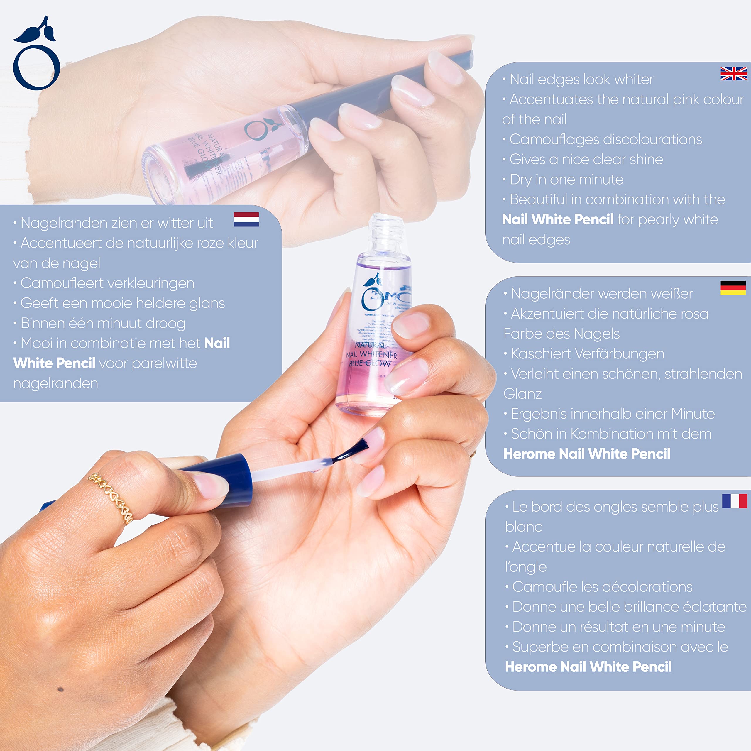 Herome Sbiancante Unghie Naturali Blue Glow - accentua il colore rosa naturale dell'unghia e rende le punte delle unghie più bianche (Natural Nail Whitener Blue Glow) - 10ml.