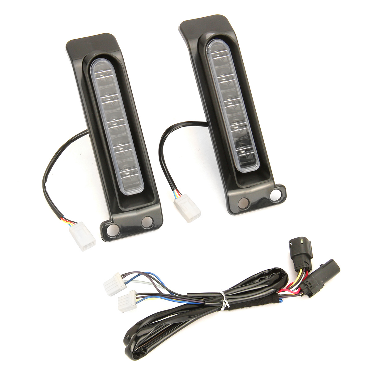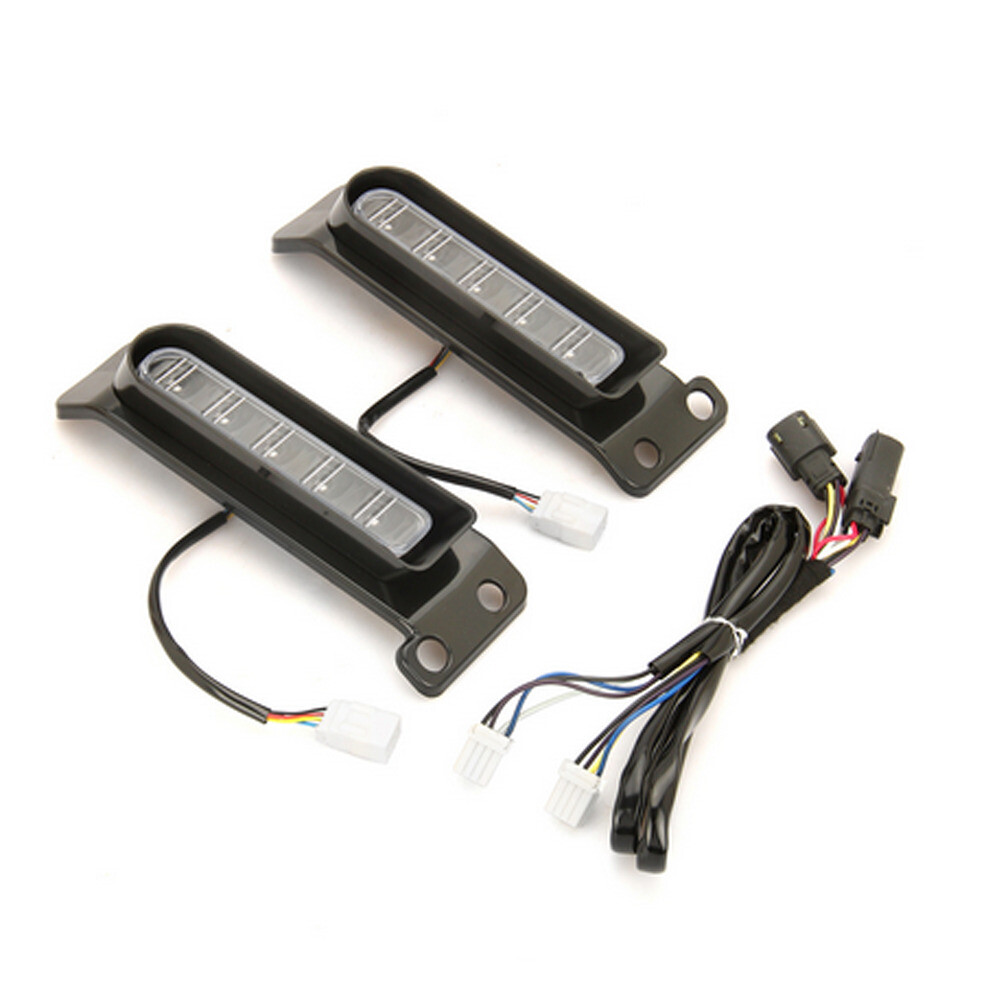 - Nestled in the fender strut opening, these LED lamps add stylish and practical lighting to the rear of the bike.