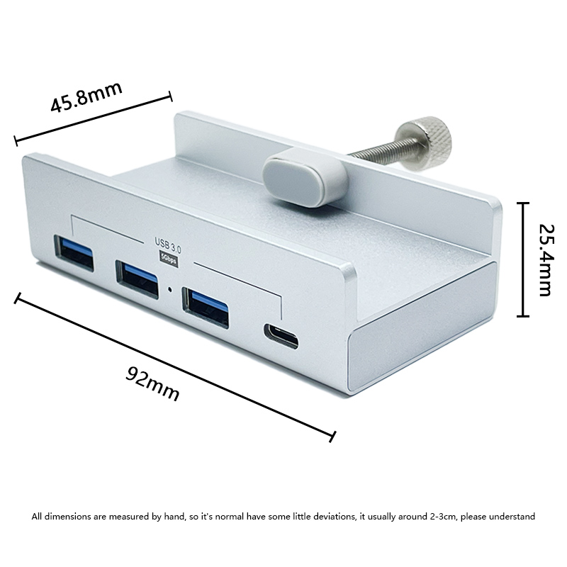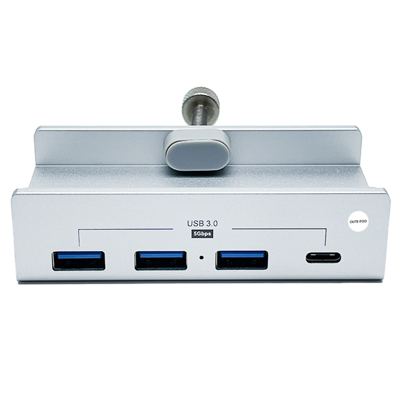 This beautiful Aluminum Clamp Hub USB 3.0 (5Gbps) 4port hub transforms one of your USB port into four, allowing you to easily connect your USB devices to a convenient location underneath your monitor. The 3.0 USB hub Quickly and efficiently transfer data between your computer and camera, smart phone, music player, tablet, flash drive, and external hard drive at rates of up to 5.0Gbps–10 times faster than USB 2.