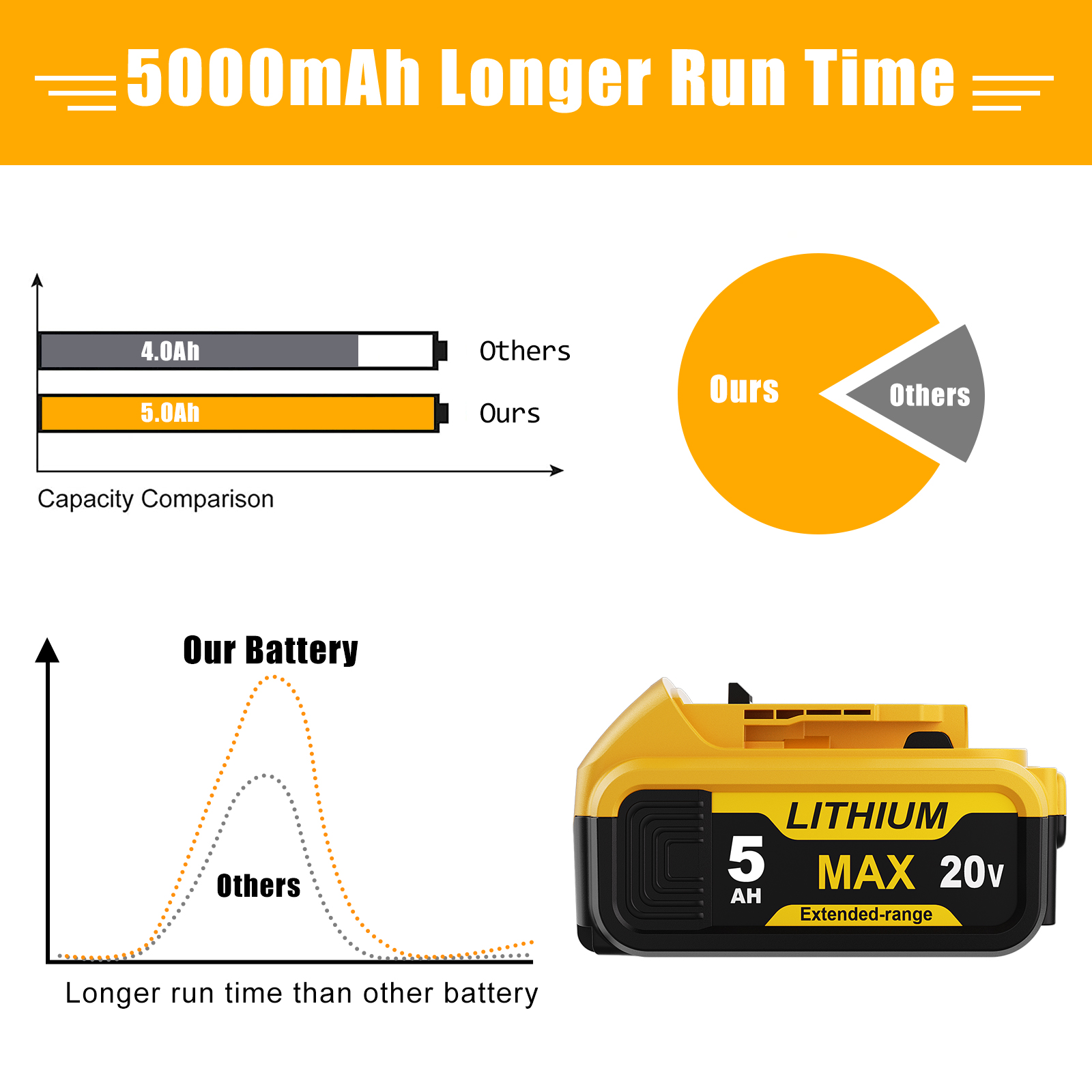 1x 20V Li-Ion 5000mAh replacement battery for DCB200 DCB204