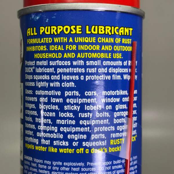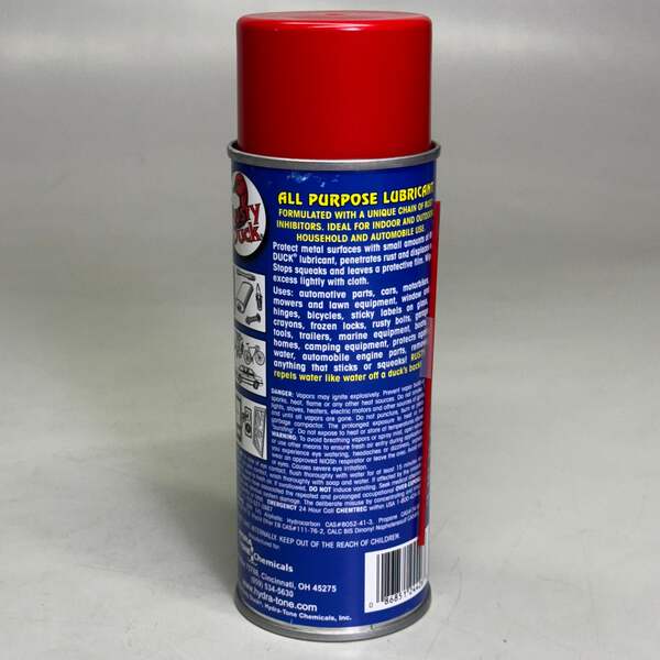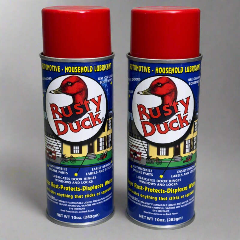 The RUSTY DUCK Lubricant (2 Pack) is an essential tool for maintaining smooth operation in a variety of household and automotive applications. This 10 oz spray is designed to lubricate doors, hinges, windows, locks, and other moving parts. Its blue formula ensures that parts stay well-lubricated and free from rust, enhancing their longevity and function. Whether you're fixing squeaky doors or ensuring smooth window operation, RUSTY DUCK makes maintenance simple and effective. With a convenient two-pack, you’ll always have lubricant on hand when needed.