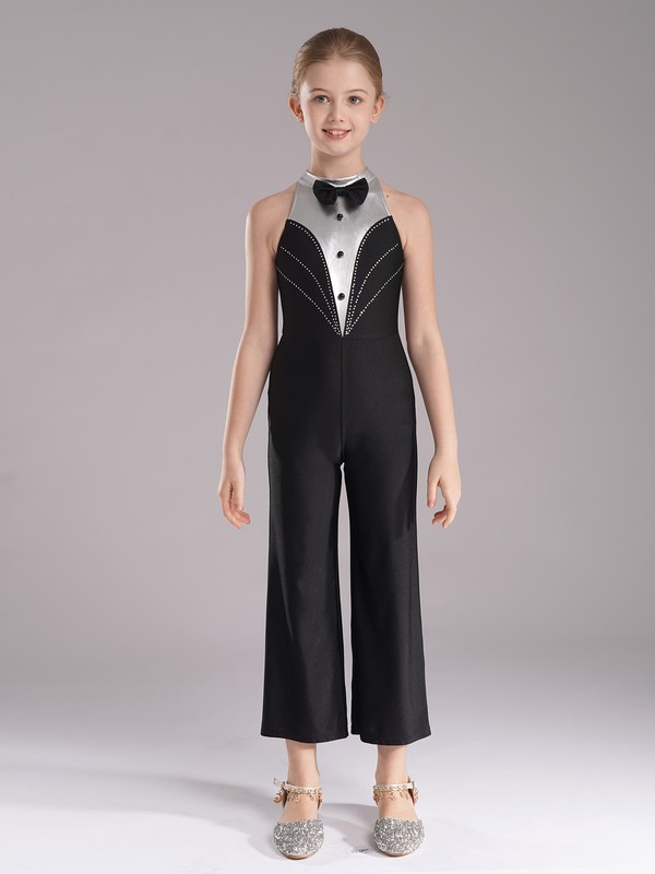 Girls’ sleeveless straight-leg full length jumpsuit ensures total movement and flexibility during dancing.