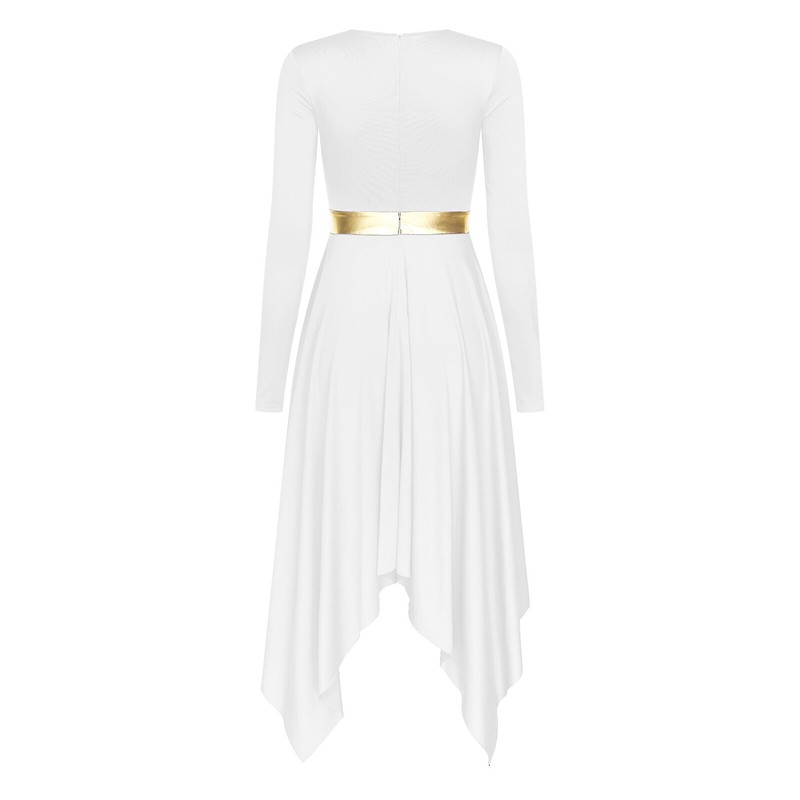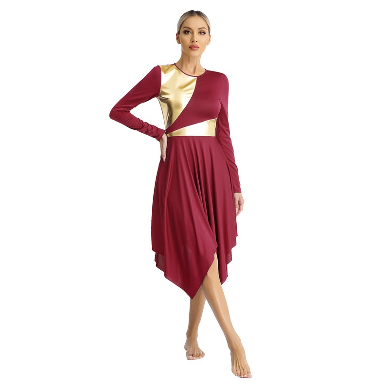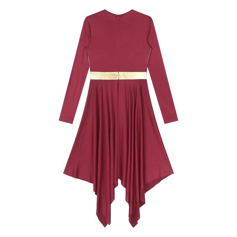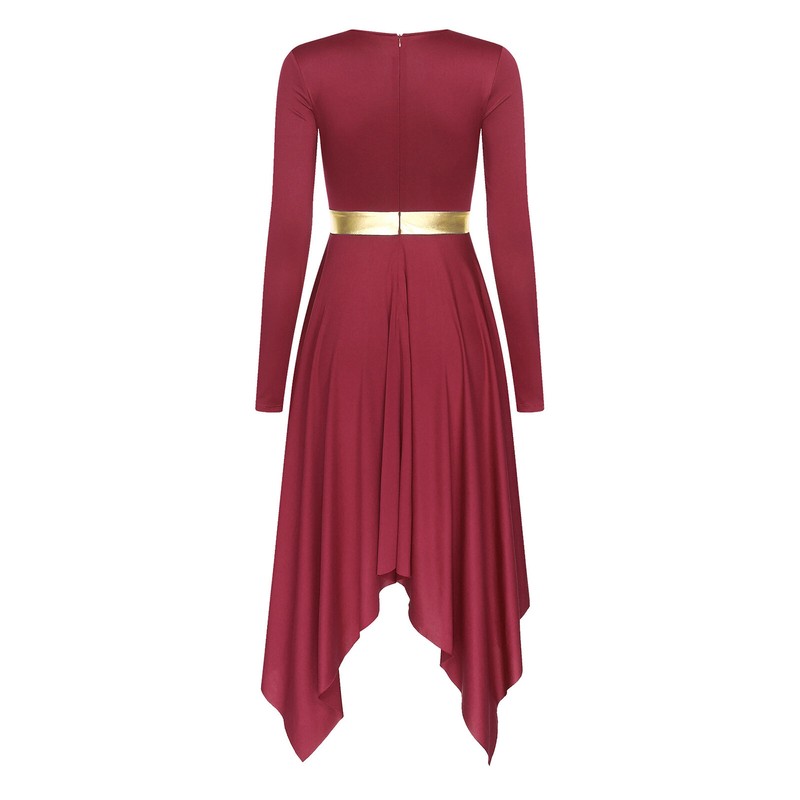 Women’s Round neck Long Sleeve Dance Dress with invisible zipper on the back for easy wearing.