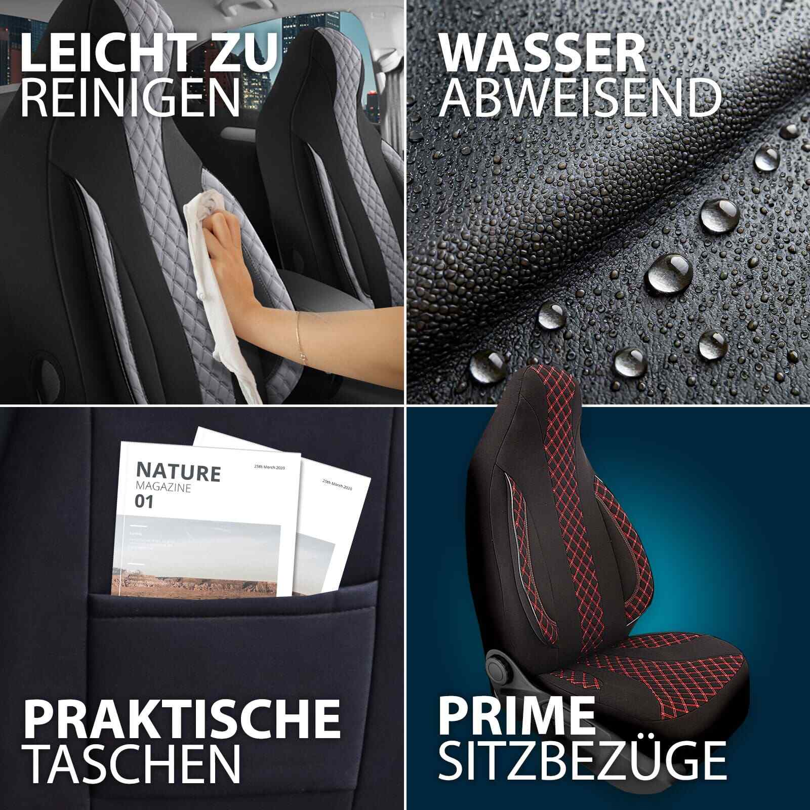 Prime Sitzbezüge bietet Ihnen die perfekte Kombination aus Funktionalität und Stil für Ihr Fahrzeug. Unsere Bezüge sind nicht nur robust und langlebig, sondern auch maßgeschneidert für eine präzise Passform – genau für Ihr Auto. Jeder Bezug wird aus hochwertigen Materialien gefertigt, um maximalen Komfort und Schutz zu gewährleisten. Gleichzeitig schützt er Ihre Originalsitze vor Abnutzung, Schmutz und Flecken, was den Wiederverkaufswert Ihres Autos steigern kann. Mit einer breiten Palette an Designs können Sie Ihr Fahrzeug individuell gestalten, ohne Kompromisse bei der Qualität einzugehen. Dazu genießen Sie einen erstklassigen Kundenservice, der Ihnen in jeder Phase zur Seite steht.