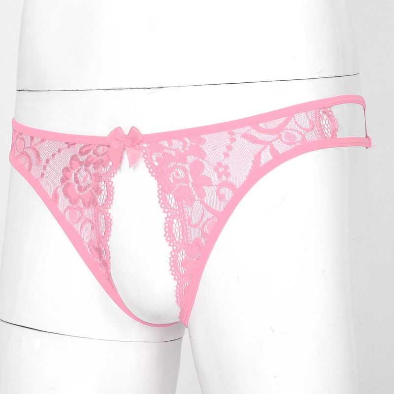 Men Floral Lace Crotchless T-back Briefs Hollow Out Low Waist Thong Underpants.