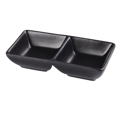 Yanco China Noble Black Porcelain 3 oz. Double Sauce Dish - 3 Doz - NB-4032 Dishwasher, Oven & Microwave Safe