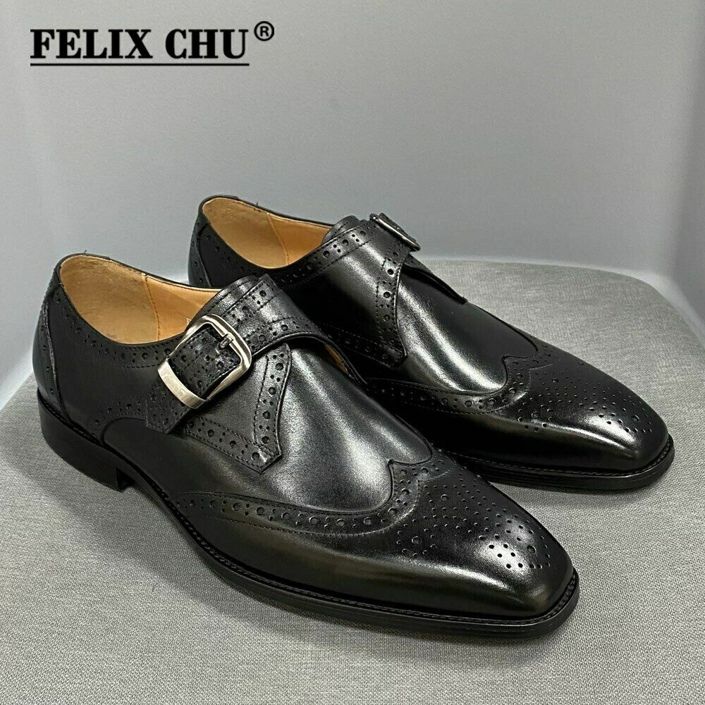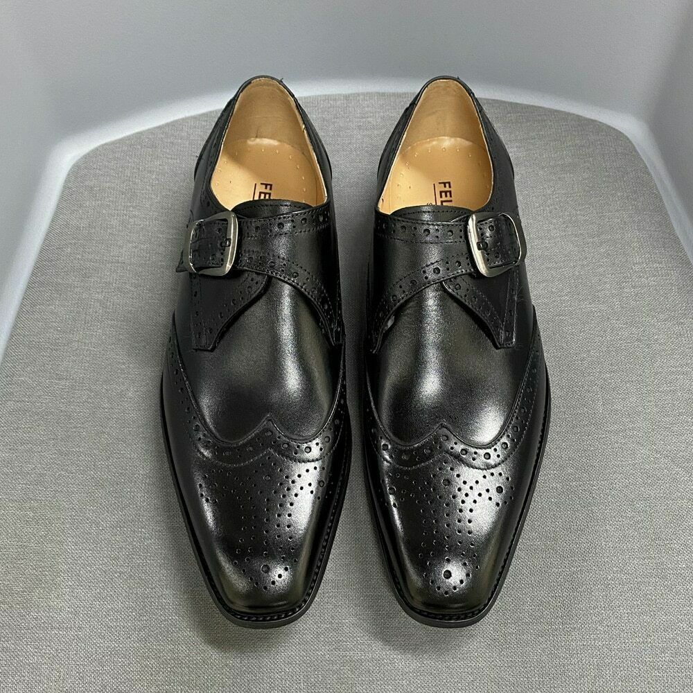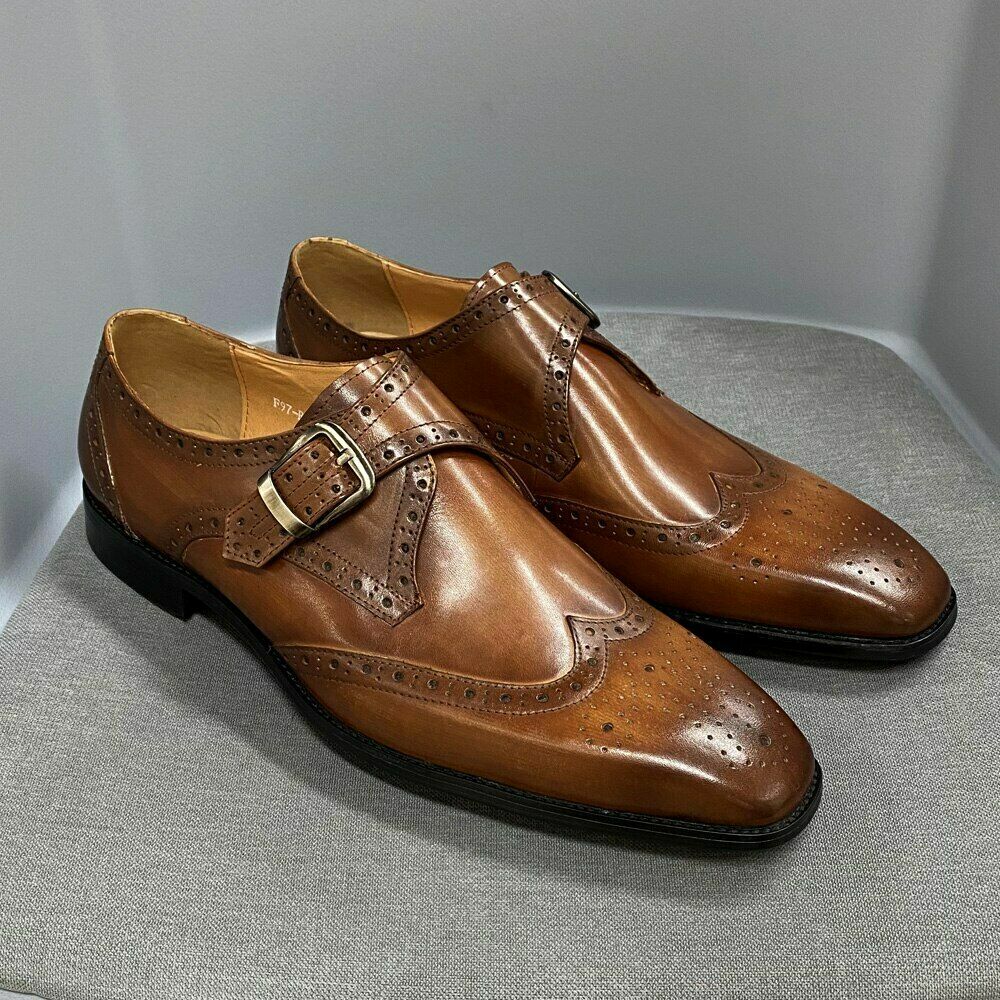 Men Dress Shoes Men Leather Shoes Men Monk Strap Brogue Wedding Shoes Business
