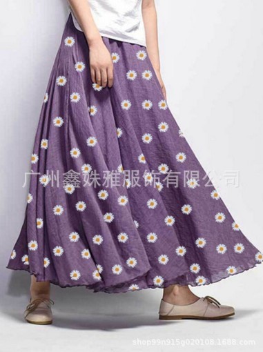Bohemian Holiday Print Skirt Summer, High Waist Floral Mid-length A-line Skirt