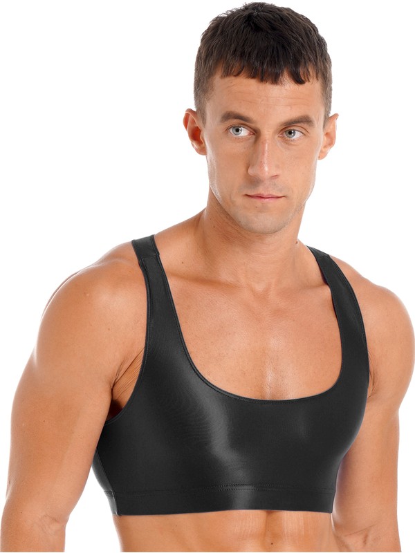 Mens Glossy U Neck Tank Tops Solid Color Sleeveless Crop Top Vest.