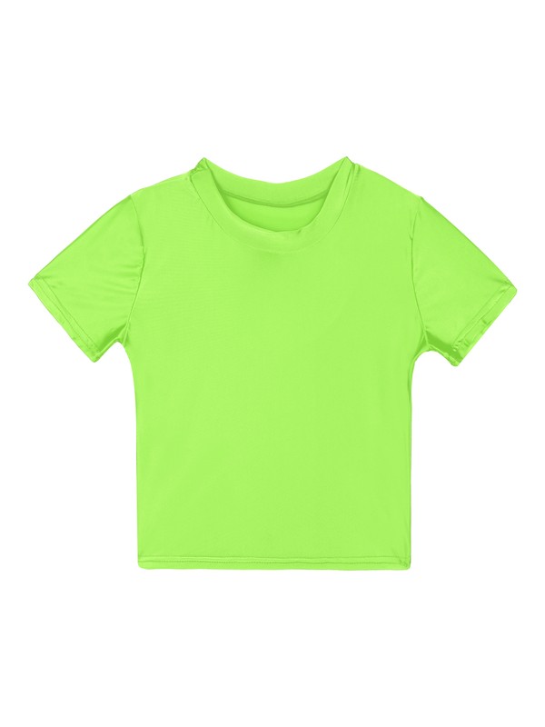 Womens Smooth Short Sleeve Crop Top Solid Color Round Neck Slim Fit T-shirt Swimwear.