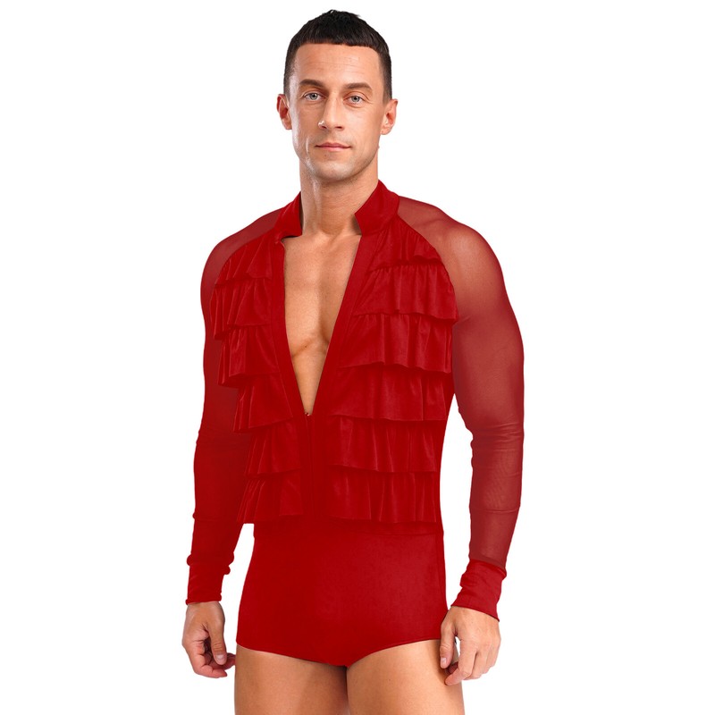 Men Rompers One Piece Unitard Ballroom Leotard Patchwork Bodysuit Ballet Sport